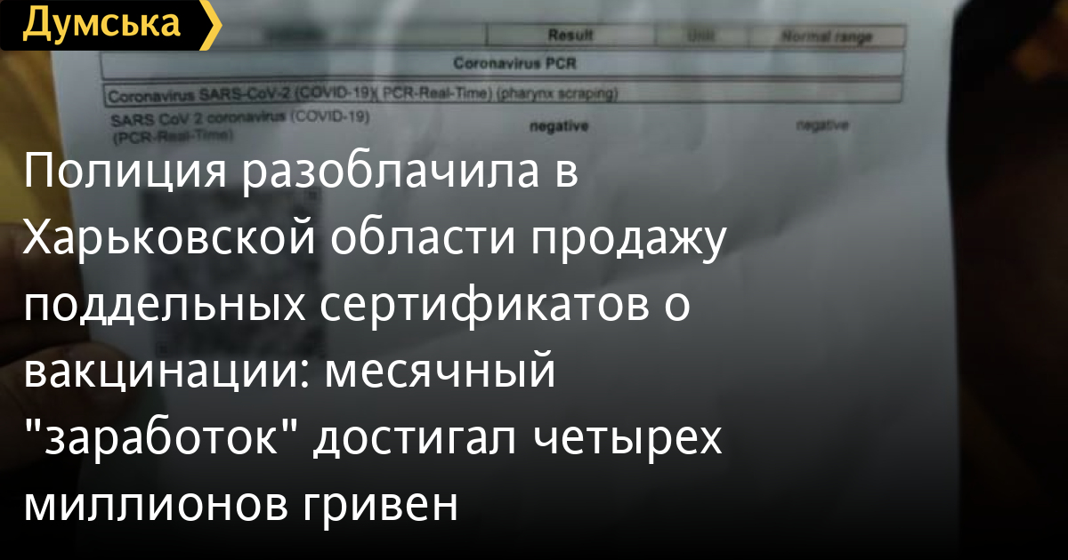 Полиция разоблачила в Харьковской области продажу поддельных сертификатов о вакцинации: месячный «заработок» достигал четырех миллионов гривенГруппу злоумышленников, которая продавала фальшивые сертификаты о вакцинации и результаты ПЦР-тестов на коронавирус, разоблачила полиция в Харьковской области. Ежемесячный «заработок» мошенников составлял почти четыре миллиона гривен. Как сообщил в Фейсбук глава Национальной полиции Игорь Клименко, в преступную группу входили десять человек. Они незаконно использовали логотип медлаборатории и печати различных медучреждений. За время своей деятельности злоумышленники успели изготовить и продать свыше 40 тысяч поддельных справок и около 500 COVID-сертификатов. «В итоге «наработали» злоумышленники себе на 4 статьи Уголовного кодекса семеро из них (включая организатора) задержаны», — уточнил Клименко. СМЕРТЬ РОССИЙСКИМ ОККУПАНТАМ! Заметили ошибку? Выделяйте слова с ошибкой и нажимайте control-enter Новости по этой теме: 4 марта 2023: "Вакцини-довгожителі", або Як щеплення проти COVID-19 перетворилися в Україні на небезпечний ритуал 27 января 2023: МОЗ обязали опубликовать договоры на закупку вакцин против COVID-19: апелляционный суд удовлетворил иск журналиста "Думской" 11 января 2023: За неделю в Одессе зафиксировано 159 случаев ковида 4 января 2023: За неделю в Одессе зарегистрировано 113 случаев ковида |