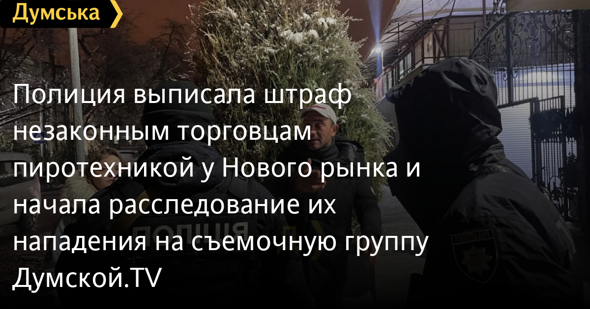 Полиция выписала штраф незаконным торговцам пиротехникой у Нового рынка и начала расследование их нападения на съемочную группу Думской.TVПолиция открыла уголовное производство по ч.1 ст.171 УК Украины (препятствование законной профессиональной деятельности журналистов) в отношении продавцов пиротехники, которые вечером 28 декабря напали на съемочную группу Думской.TV. Как сообщили в ГУНП, правоохранители установили, что фигуранты незаконно продавали петарды и фейерверки. Кроме уголовной статьи, их действия также квалифицировали по ст.195-6 Кодекса Украины об административных правонарушениях (нарушение порядка продажи и использования пиротехнических средств). Пиротехнику изъяли. СМЕРТЬ РОССИЙСКИМ ОККУПАНТАМ! Заметили ошибку? Выделяйте слова с ошибкой и нажимайте control-enter |