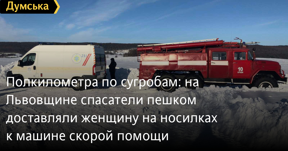 Полкилометра по сугробам: на Львовщине спасатели пешком доставляли женщину на носилках к машине скорой помощиВо Львовской области спасателям пришлось около 500 метров нести больную на носилках по заснеженной дороге. По информации в ГСЧС, 16 февраля в 14:47 в службу спасения «101» поступило сообщение, что в селе Перелески Золочевского района в результате сложных погодных условий автомобиль скорой помощи не может прибыть к месту вызова. Спасателями и медиками было принято решение следовать к больной женщине пешком – расстояние составило около 500 метров заснеженной дороге После осмотра больной фельдшер принял решение госпитализировать женщину 1962 года рождения. Спасатели тем же путем 500 метров на медицинских носилках перенесли пациентку в карету скорой, после чего ее госпитализировали в Бродовскую центральную больницу. СМЕРТЬ РОССИЙСКИМ ОККУПАНТАМ! Заметили ошибку? Выделяйте слова с ошибкой и нажимайте control-enter |