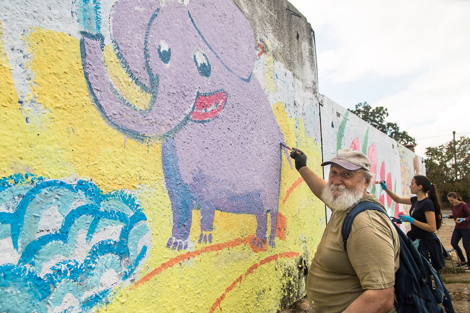 В художественном пленере приняли участие совершенно разносторонние люди, объединенные любовью к творчеству – наравне творят профессиональные художники и любители, представители классической школы и графитчики. Логотип диспансера доверили рисовать одесской художнице, неоднократной победительнице Одесского фестиваля песчаной скульптуры Ирине Загайчук. Недалеко «бомбит» баллонами секцию забора уличный художник Игорь Матроскин с коллегой Денисом.