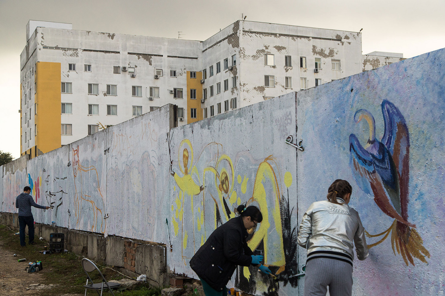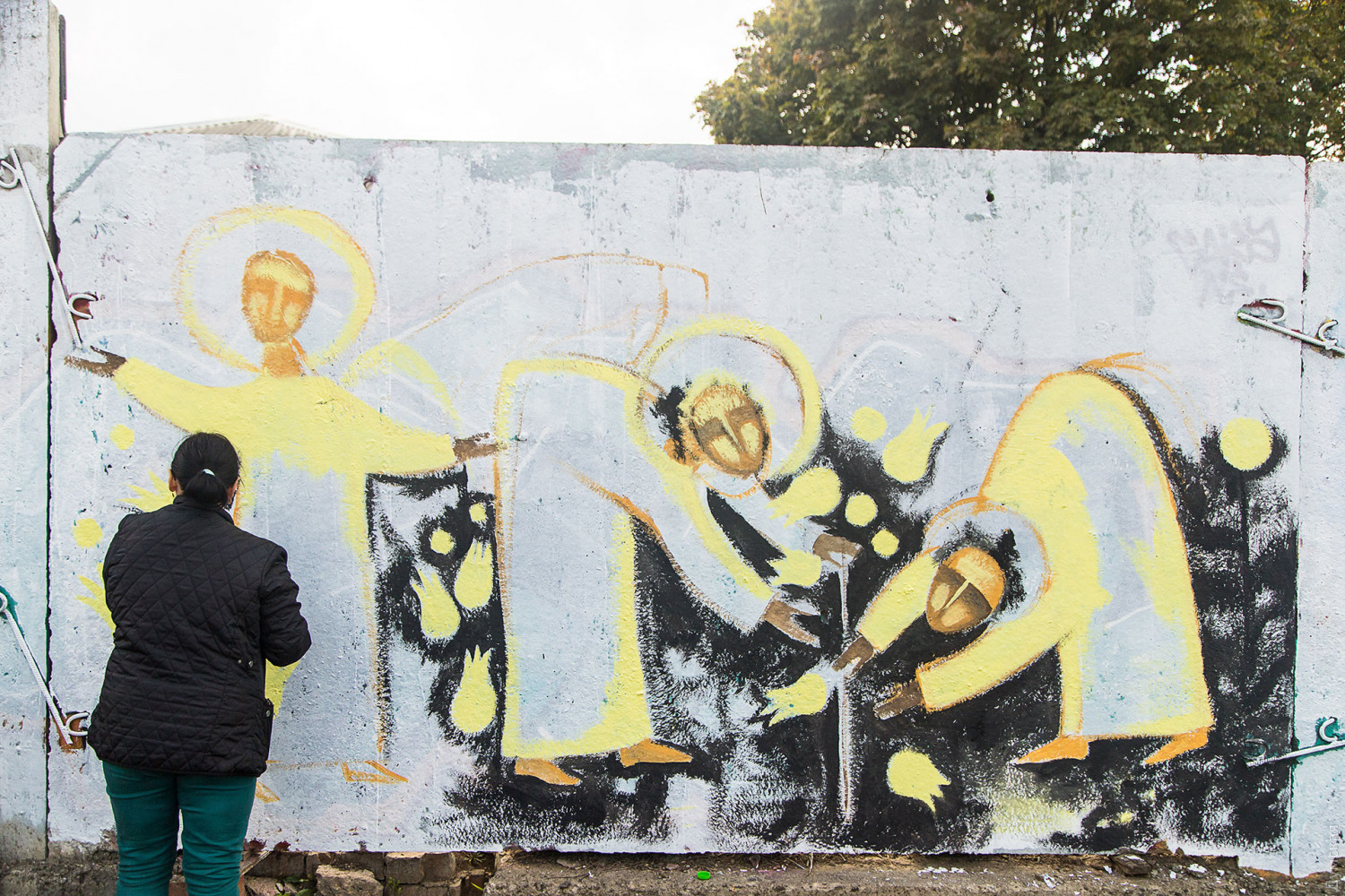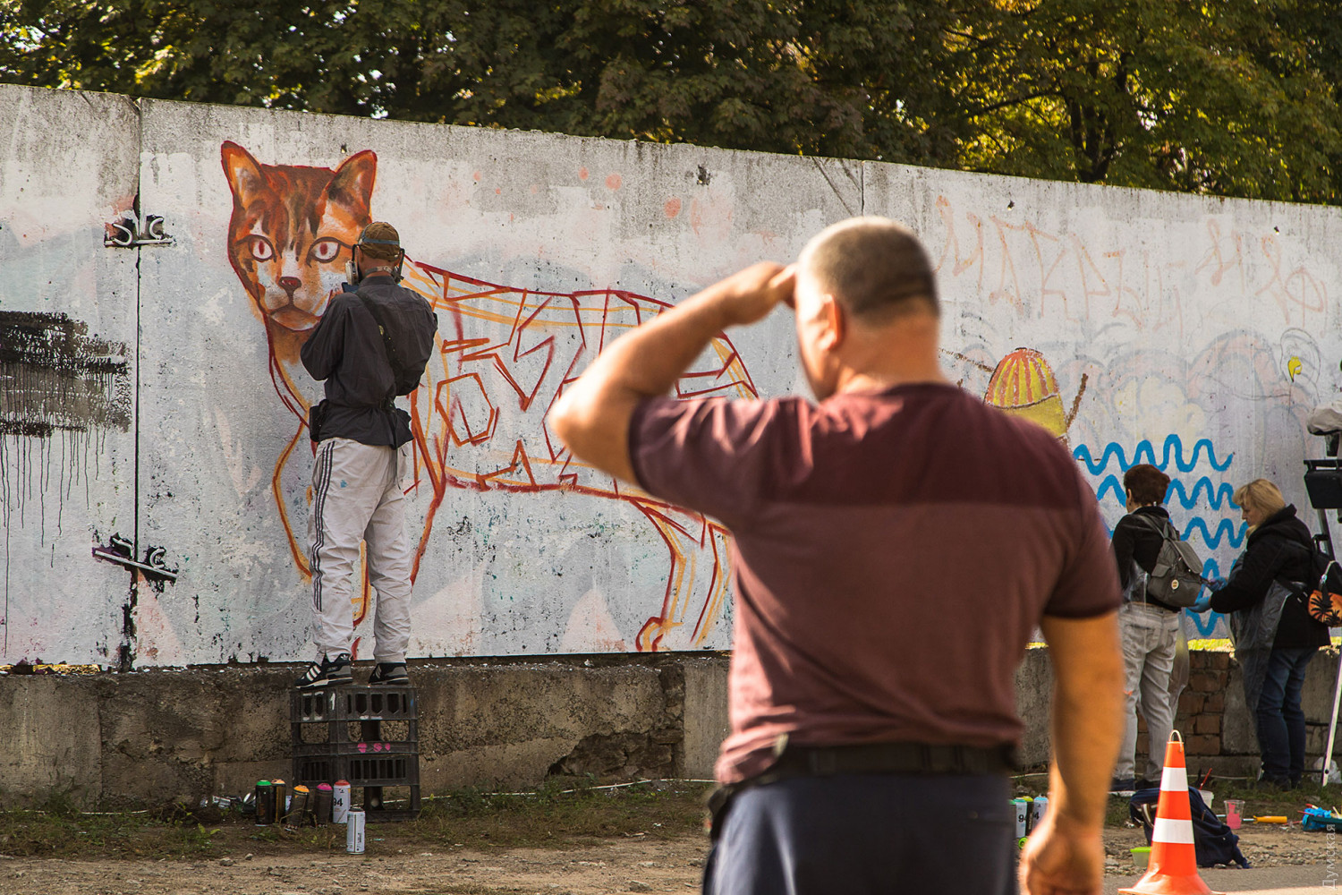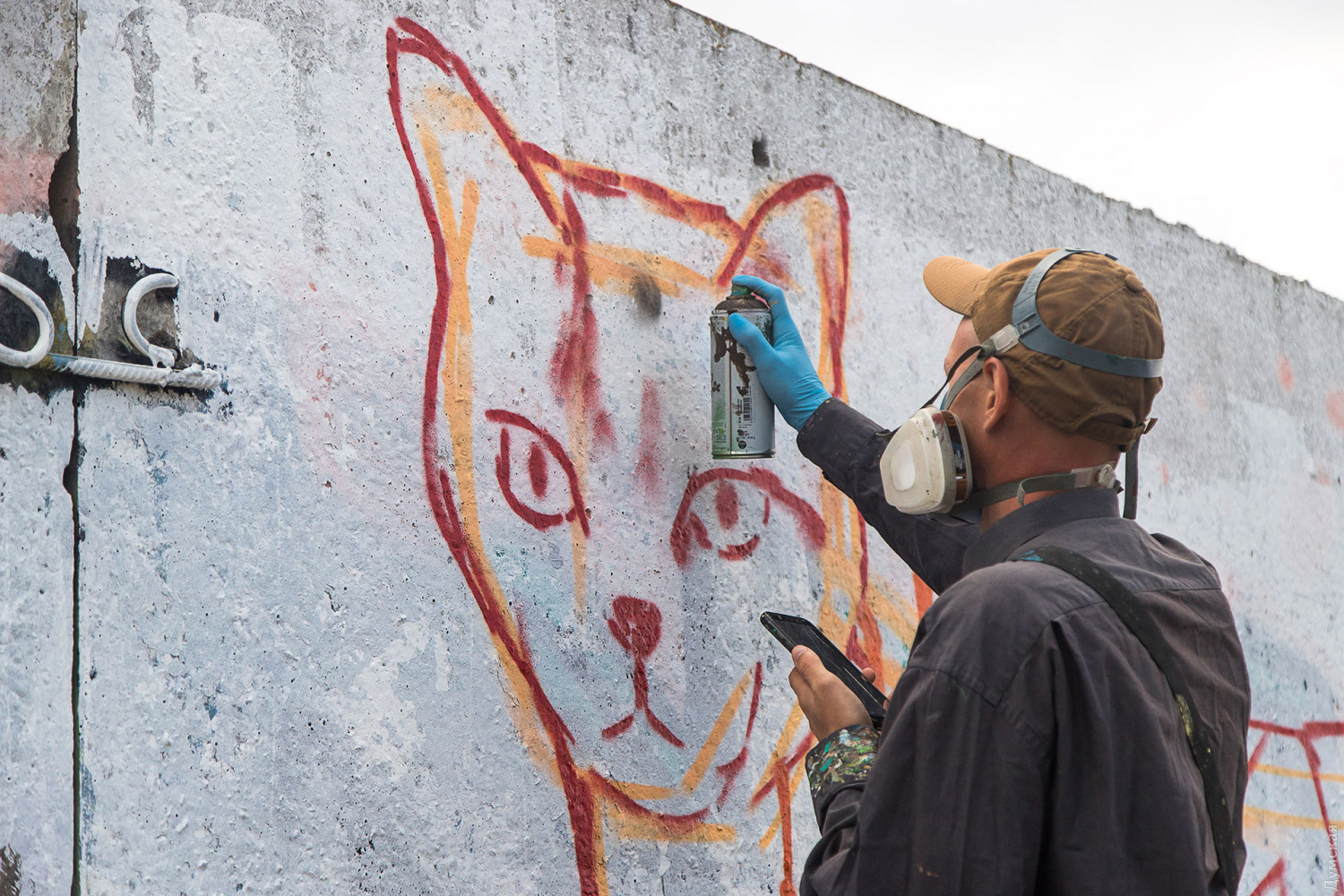 «У нас появилось свободное время и мы рисуем кота – наше тотемное животное, — делится Игорь. — Среди тех, кто рисует баллончиками, такие совместные акции проходят регулярно, а здесь еще и социальная функция – это вдвойне приятно».