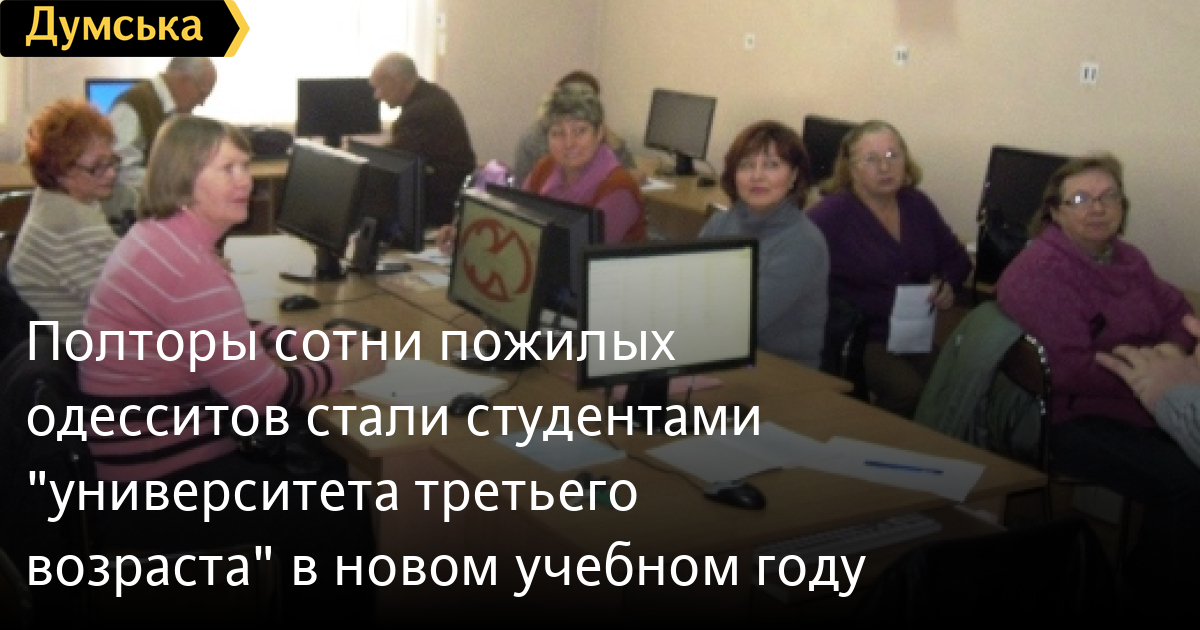 Полторы сотни пожилых одесситов стали студентами «университета третьего возраста» в новом учебном году150 одесситов преклонного возраста пополнили ряды слушателей «университета третьего возраста» в новом учебном году. Студенты имеют возможность выбрать из целого ряда факультетов, самыми востребованными из которых в новом учебном году стали факультеты английского языка, культурологи и одессаведения, основ компьютерной грамотности, здорового образа жизни. В рамках «университета третьего возраста» слушатели также смогут посещать курс экологии, краткий курс эсперанто, медиаграмотности и журналистики, сомелье, имиджелогии, психологоавтобиографический курс, театральную и танцевальную студии, творческую мастерскую, литературную и музыкальную гостиную и многое другое. СМЕРТЬ РОССИЙСКИМ ОККУПАНТАМ! Заметили ошибку? Выделяйте слова с ошибкой и нажимайте control-enter |