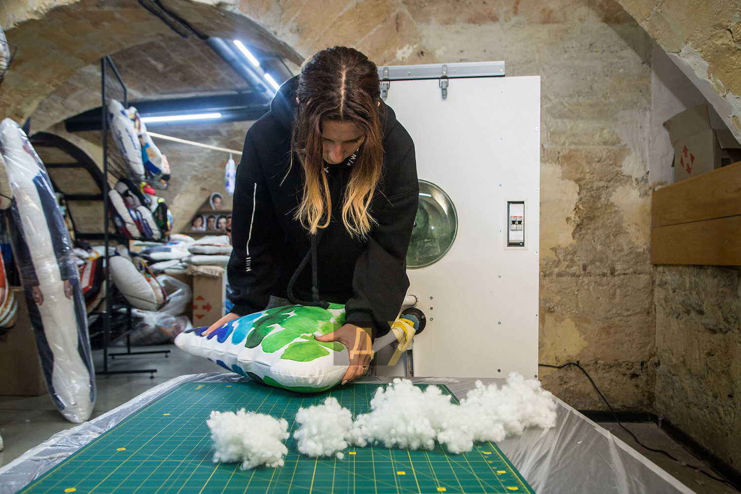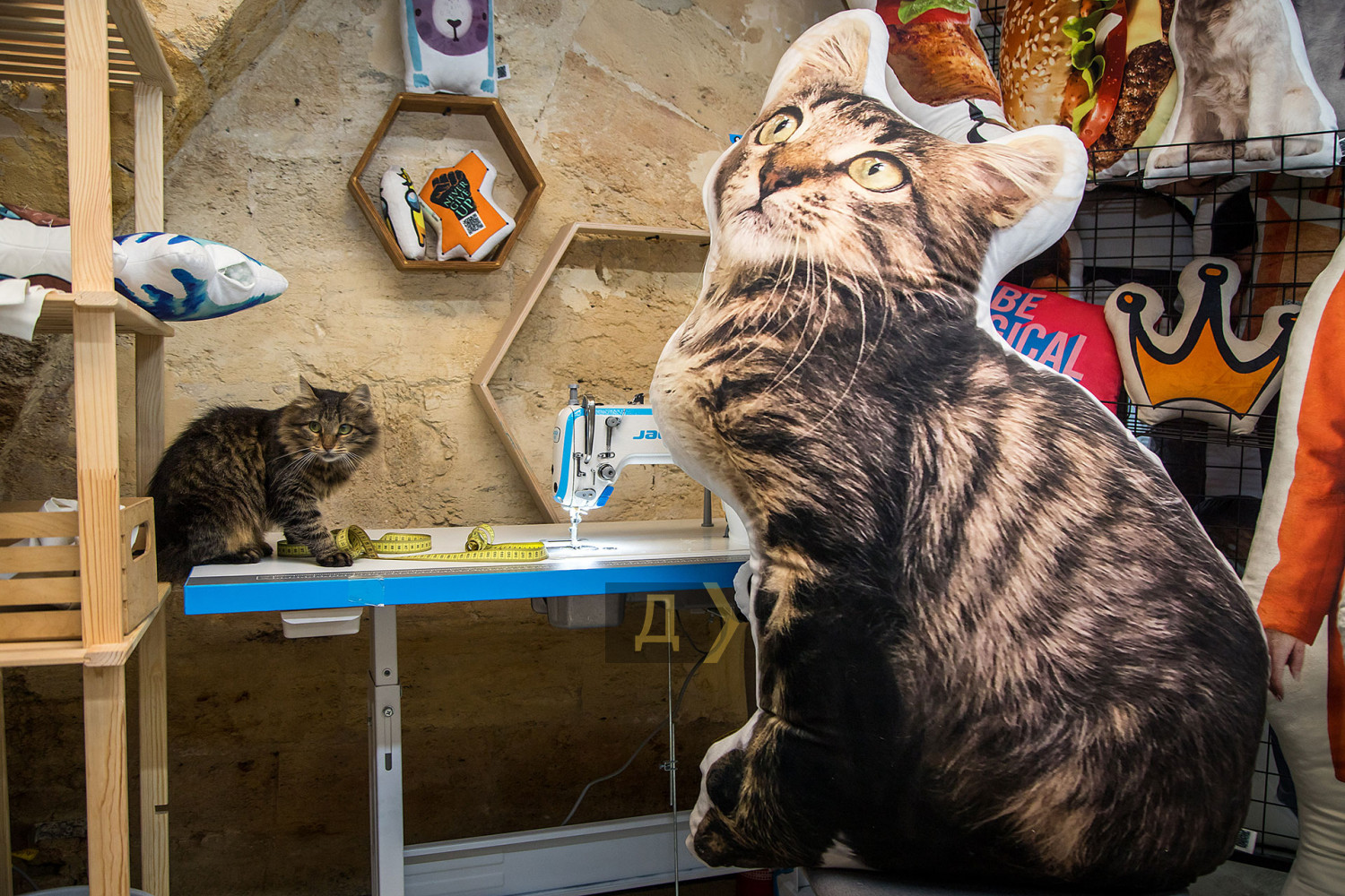 Полутораметровый кот, дакимакура Гордона и мягкий Меладзе: на Большой Арнаутской делают подушки для обнимашекСогласитесь, что засыпать, обнимая дорогого тебе человека, в разы приятней, чем погружаться в сон самому. Это чувство из детства. У кого из нас не было любимой плюшевой игрушки, с которой так хорошо спалось? Объятия, вообще, штука полезная — активирует выделение окситоцина и серотонина. Японцы первыми догадались, что даже взрослому человеку необходим переходный объект — вещь, создающая атмосферу психологического комфорта, ассоциирующаяся с чем-то добрым. И создали дакимакуру (от яп. «даки» 抱き — обнимать, цепляться и «макура» 枕 — подушка) — подушку для подростков размерами до 150 см с изображениями героев японской мультипликации в полный рост. Очень быстро из фетиша анимешной субкультуры подушка для объятий стала популярным сувениром. Корреспондент «Думской» выяснил, что такие подушки уже год как производят в Одессе, и не где-нибудь, а на Большой Арнаутской. Производство занимает цокольный этаж здания недалеко от Арабского центра. «Делать подушки с изображением придумал мой друг Сурен, — рассказывает соучредитель компании, выпускница ОГАСА Анастасия Миничева. — Долго думал, вынашивал идею, год назад все сошлось, и мы стартовали». Анастасия не только руководитель, но и лицо маркетинговой кампании — фирма получила название I am Pillow Queen, и девушке пришлось примерить образ королевы подушек. «Первой нашей ростовой подушкой стал Макс Барских, — вспоминает Анастасия. — Мы на нем проверяли цветопередачу. А вот самая знаковая, я считаю, та, с которой полноценно стартовал проект — это Валерий Меладзе. Наш талисман. Я не могу сказать, что я его поклонница или фанат, но образ нравится всем: и 17-летним девушкам, и тем, кто постарше, кто вырос на его песнях». В производстве занято четыре человека: швея, дизайнер, менеджер по продажам, сама Анастасия и кот по кличке Синтепон, любимчик всех сотрудников. У него есть своя собственная полутораметровая подушка, на которой усатый запечатлен еще котенком. Японские подушки для обнимания — не главный продукт компании. Чаще здесь заказывают индивидуальные сувенирные подушки. «90% наших подушек — это индивидуальные заказы, — делится Анастасия. — Клиенты скидывают фотографии, мы выбираем форму, утверждаем макет, наносим на ткань, делаем выкройку и набиваем наполнителем — гипоаллергенным холлофайбером». «Оригинальная дакимарука отличается от сувенирной подушки, — продолжает девушка. — Она гораздо мягче, строго прямоугольной формы и со съемной наволочкой. Их заказывают редко. Самый популярный, пожалуй, Гордон. Мы их производим для официального магазина журналиста. Сувениры набиты плотно, чтобы могли при необходимости стоять». Спустя год после начала производства изделия одесситов обнимает почти 20 тысяч украинцев. Больше всего покупателей из Киева и Одессы, но вообще заказы приходят из всех регионов страны. «Чаще это изображения мужчин, — признается Анастасия. — Наверное, потому что 85% наших покупателей — женщины. Впрочем, девушки любят заказывать свое изображение в соблазнительном виде, чтобы дарить своим мужчинам». В большинстве же своем сувенирную подушку заказывают в качестве прикольного, шутливого подарка. Любят дарить друг другу украинцы голливудских звезд или известных людей. К