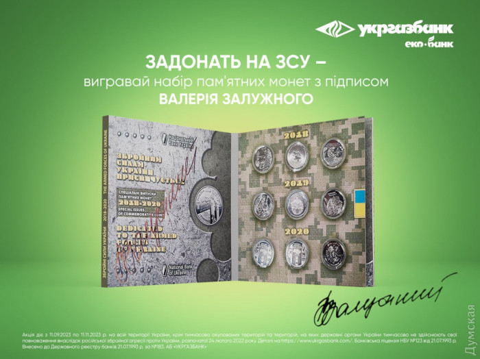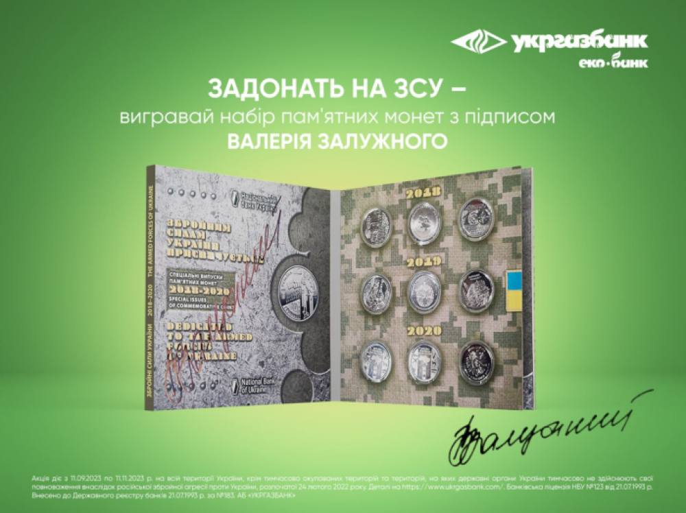 «Допомагай армії – вигравай монети з підписом Залужного!»: Укргазбанк розпочинає благодійну акцію (новини компаній)Акцію «Допомагай армії – вигравай монети з підписом Залужного!» розпочинає Укргазбанк і закликає кожного підтримати наших захисників та захисниць і долучитися до донатів на Збройні сили України. Стати учасником акції легко. Для цього потрібно: - у мобільному застосунку «Екобанк Онлайн» обрати розділ «Благодійність» в меню Послуги; - зробити донат з картки Укргазбанку від 50 грн на спеціальний рахунок, призначений для збору коштів на потреби ЗСУ, за допомогою кнопки «Національний Банк України». Важливо, що кожен новий донат збільшує не тільки суму допомоги армії, а й шанси учасника стати переможцем. Якщо у вас ще немає картки Укргазбанку, і ви хочете стати учасником акції, пропонуємо скористатися одним із варіантів оформлення картки: - звернутись до будь-якого відділення банку; - залишити заявку на відеоверифікацію за посиланням https://www.ukrgasbank.com/eco-creditka/ та відкрити картку дистанційно; - завантажити з App Store або Play Market мобільний додаток «ЕкоБанк» та відкрити картку дистанційно. П’ять наборів колекційних пам’ятних монет, присвячених Збройним силам України, для переможців: У рамках акції серед учасників буде проведено розіграш чотирьох наборів колекційних пам’ятних монет спеціального випуску 2018-2020 років, що присвячені українській армії. Набори особисто підписані Головнокомандуючим Збройних Сил України Валерієм Залужним. П’ятий набір пам’ятних монет отримає учасник, який зробив донат або донатів на найбільшу загальну суму за час дії акції. Визначення переможців буде здійснено за допомогою сервісу random.org методом випадкового вибору серед учасників, які виконали всі умови розіграшу. Долучайтесь! Кожен донат важливий! Акція діє з 11.09.2023 по 11.11.2023 включно по всій території України, за винятком тимчасово окупованої території АР Крим, територіальних громад, що розташовані в районах проведення воєнних (бойових) дій, або які перебувають в тимчасовій окупації, оточенні (блокуванні). З правилами акції можна ознайомитись ТУТ. АБ «УКРГАЗБАНК». Реєстраційний 183 у Держреєстрі банків. Банківська ліцензія НБУ 123 від 21.07.1993 Помітили помилку? Виділяйте слова з помилкою та натискайте control-enter |