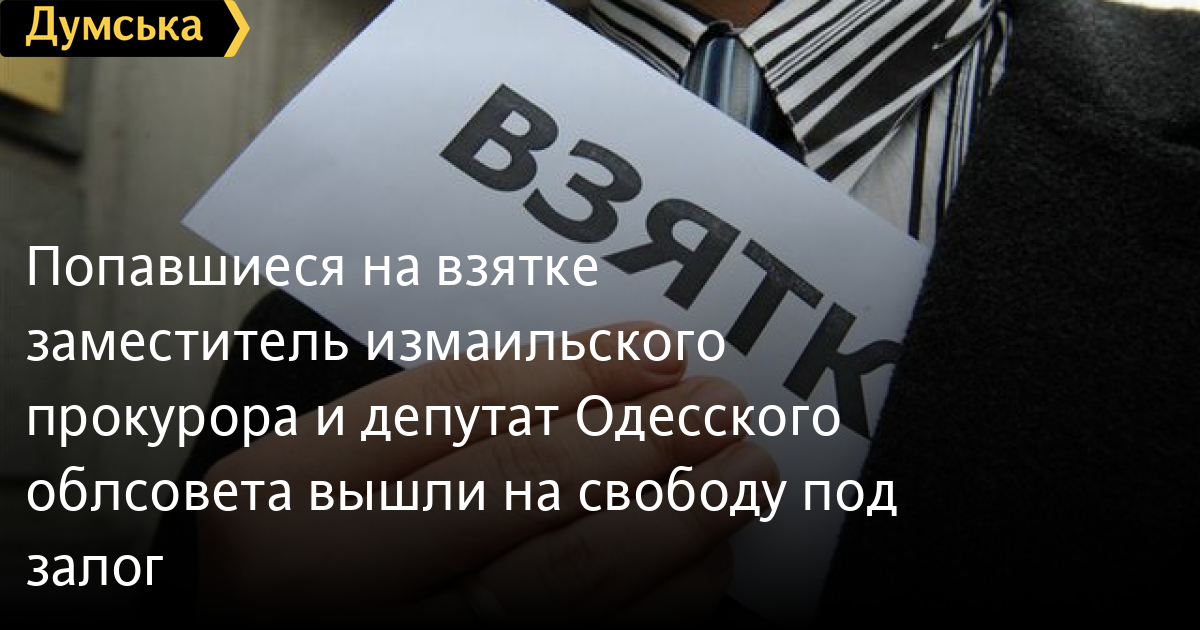 Попавшиеся на взятке заместитель измаильского прокурора и депутат Одесского облсовета вышли на свободу под залогЗадержанные при получении взятки депутат Одесского облсовета Иван Бойченко и заместитель измаильского прокурора Иван Мараховский вышли на свободу — за них был внесен залог в сумме 529 280 грн и 264 640 грн соответственно. Мараховский и Бойченко освобождены сегодня, 13 октября. Напомним, оба были задержаны сотрудниками СБУ с поличным во время получения взятки в размере 40 тысяч долларов от руководителя агрофирмы 8 октября и вывезены для проведения следственных действий в Киев. За эти деньги они обещали не препятствовать предпринимательской деятельности бизнесмена, связанной с выращиванием зерна. Напомним, 10 октября суд избрал меру пресечения для задержанных и определил сумму залога. СМЕРТЬ РОССИЙСКИМ ОККУПАНТАМ! Заметили ошибку? Выделяйте слова с ошибкой и нажимайте control-enter Новости по этой теме: 9 августа 2025: Обещала «закрыть глаза» на нарушение: сотрудницу Одесской таможни поймали на взятке в четверть миллиона гривен 15 июля 2025: Требовала 400 евро за подделку документов для пенсии: в Одесской области чиновница попалась на взятке (фото, видео) 27 июня 2025: За 40 тыс. грн хотел купить секретные разработки: в Одессе задержали сотрудника частной фирмы |