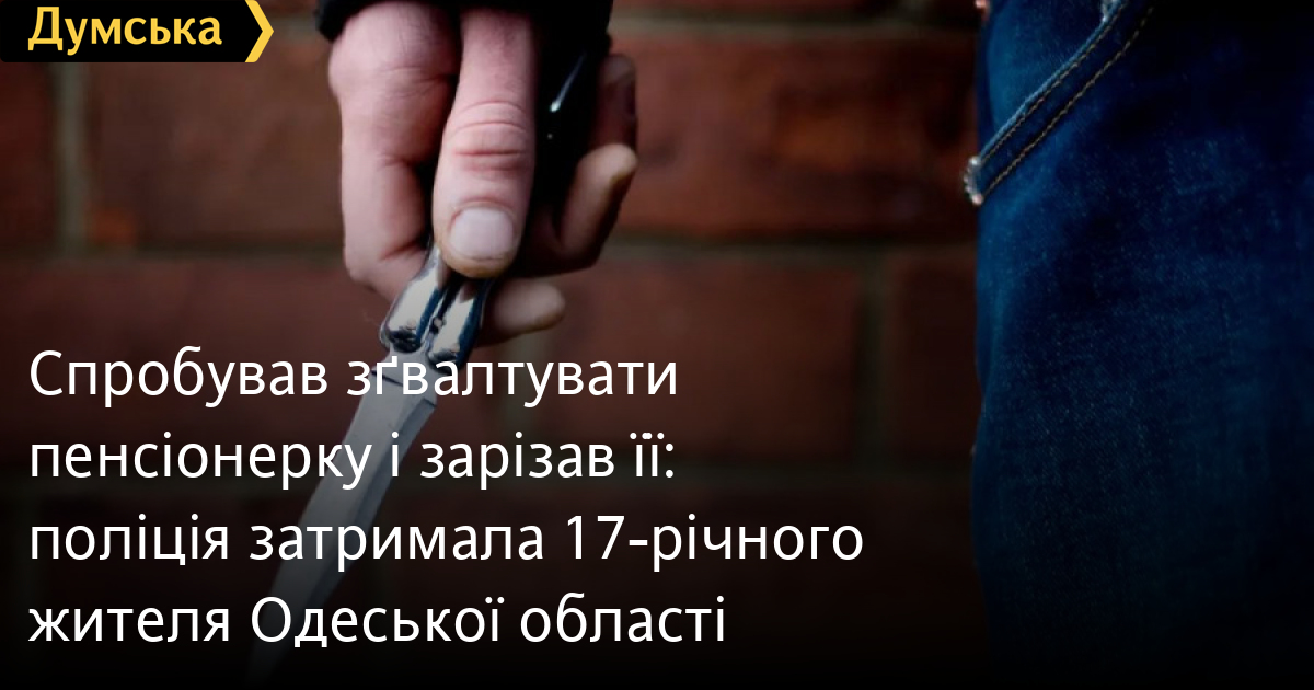 Спробував зґвалтувати пенсіонерку і зарізав її: поліція затримала 17-річного жителя Одеської областіНеповнолітній житель Ізмаїльського району спробував зґвалтувати літню жінку, а коли вона почала чинити опір, зарізав її. Як повідомили «Думській» джерела в правоохоронних органах, п'яний 17-річний хлопець прийшов у будинок, де жила його мати з чоловіком і свекрухою. Він зайшов у літню кухню, де перебувала 71-річна жінка, і почав роздягати її. Але жертва чинила опір, тож неповнолітній схопив ніж і п'ять разів ударив її в шию та в живіт. Після цього він викинув ніж і втік, але вже наступного дня поліція затримала підозрюваного. Відомості про подію внесли до ЄРДР за ч. 1 ст. 115 КК України. Помітили помилку? Виділяйте слова з помилкою та натискайте control-enter |