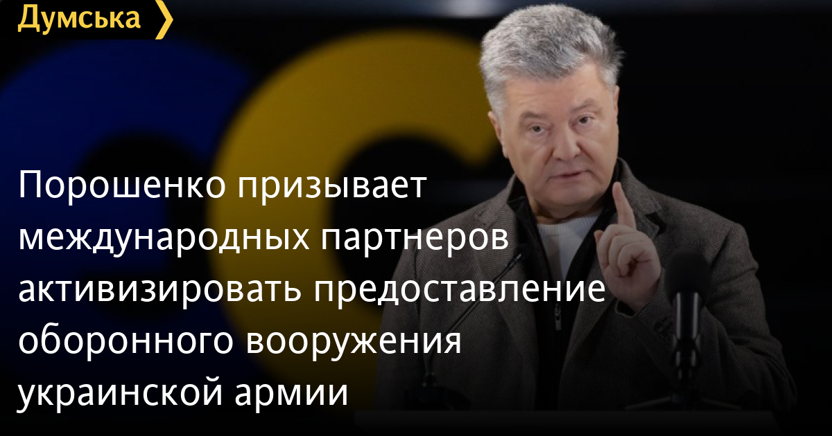 Порошенко призывает международных партнеров активизировать предоставление оборонного вооружения украинской армииПятый президент Украины, лидер политической партии «Европейская солидарность» Петр Порошенко призывает международных партнеров предоставить украинской армии помощь в виде оружия, которое значительно повысит боевые способности Вооруженных сил Украины. Как сообщает пресс-служба «Евросолидарности», Порошенко отметил важность поддержки Украины международными партнерами в условиях угрозы российского вторжения. «Позиция номер один – предоставление Украине помощи в виде поставки нам оборонного вооружения, которое значительно повысит боевые способности украинских Вооруженных сил», – сказал политический деятель. Он отметил, что Украина не просит, чтобы «натовские солдаты воевали за наш суверенитет, поскольку у Украины есть одни из лучших в мире вооруженных сил, которые способны дать отпор». «Но для повышения эффективности наших Вооруженных сил и для повышения той цены, которую заплатит Путин, когда это решение может остановить Путина от этого ужасного решения, мы должны восстановить что-нибудь вроде программы оборонной помощи Украине под условным названием «ленд-лиз 2», – пояснил нардеп. При этом, пятый президент уточнил, что речь не идет о получении материально-бытовой помощи в виде пищевых наборов, одежды или зимнего горючего. «Мы нуждаемся в высокоэффективном современном оружии в виде систем противовоздушной обороны, систем радиоэлектронной разведки и препятствия, контрбатарейных систем, ударных дронов и других позиций, которые остановят агрессора от принятия ужасного решения», – резюмировал Порошенко. СМЕРТЬ РОССИЙСКИМ ОККУПАНТАМ! Заметили ошибку? Выделяйте слова с ошибкой и нажимайте control-enter |