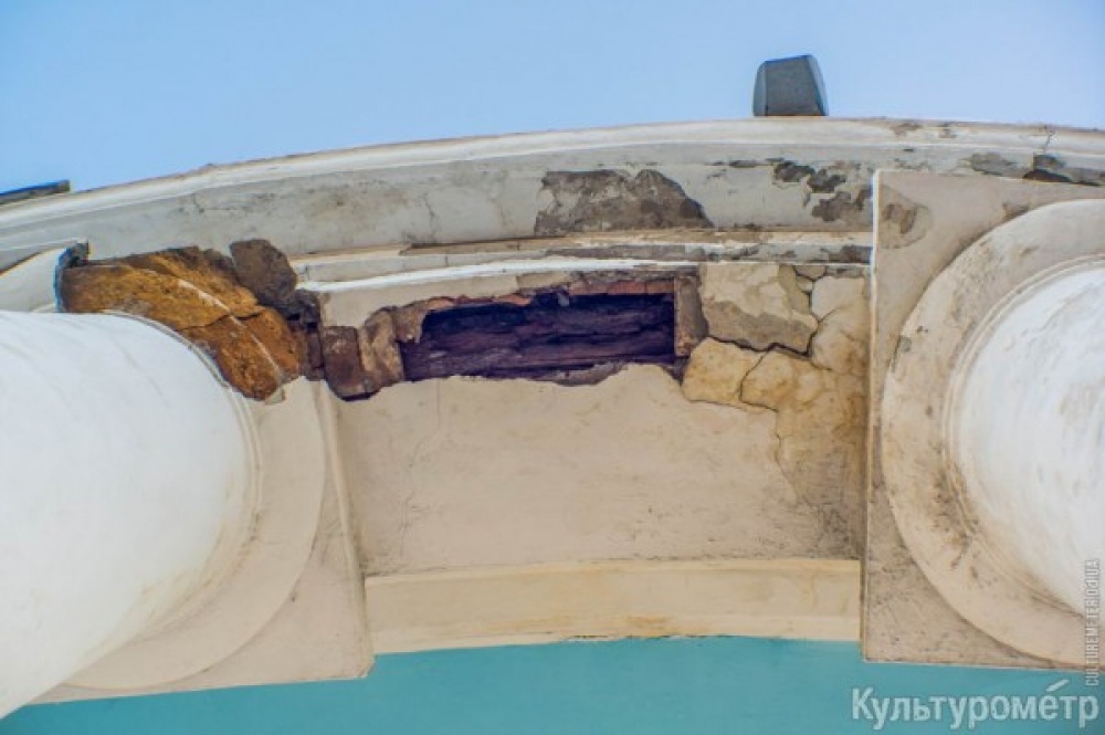 Как сообщает «Культурометр», после недавних дождей со стороны порта у нее обвалился карниз на одном из пролетов.