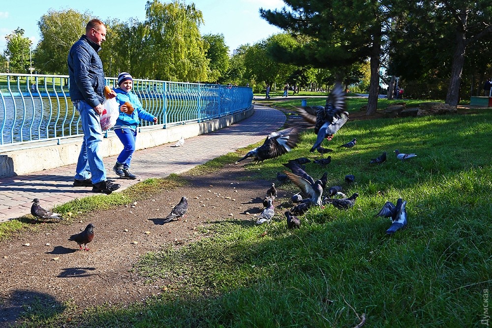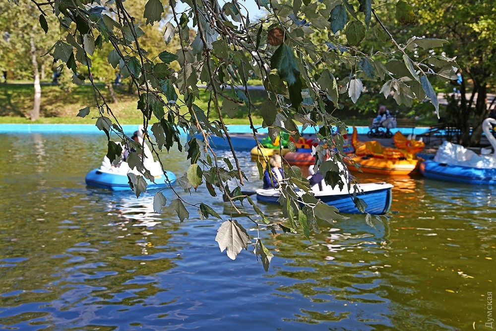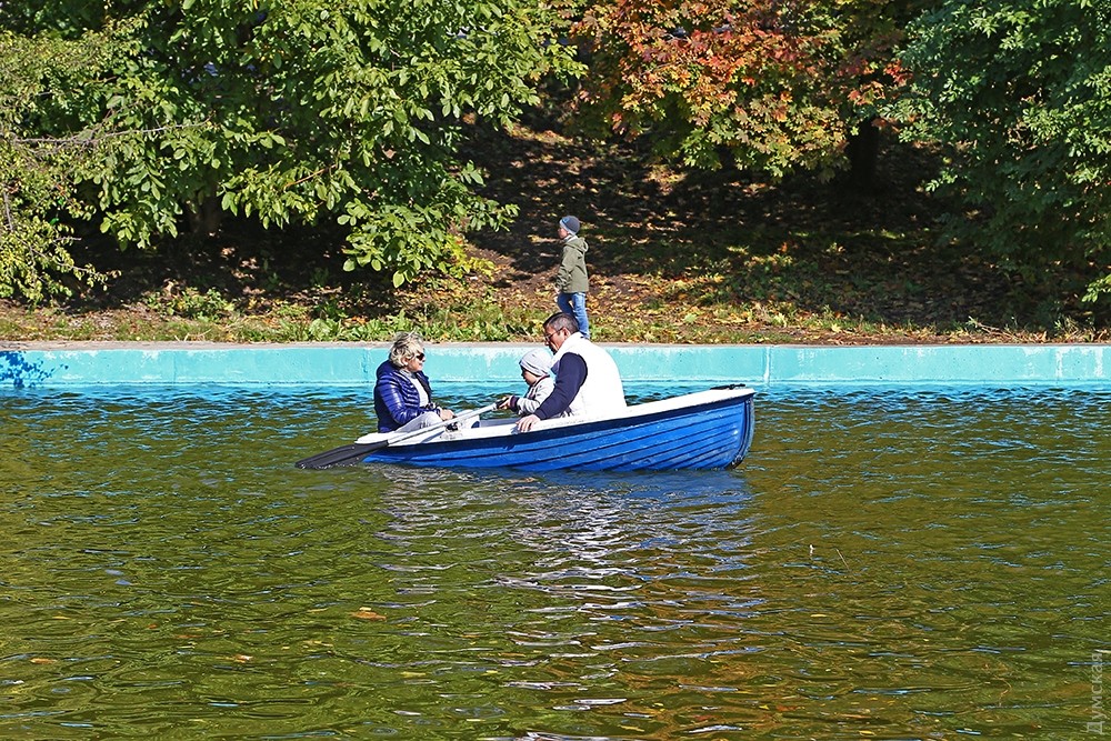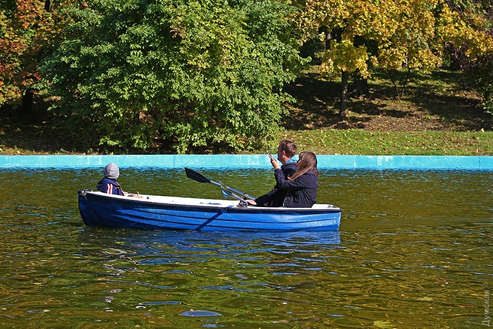 После вчерашнего холодного дождя в Одессу вернулась безоблачная осенняя погода. Корреспондент «Думской» прогулялся по аллеям парка Победы и сделал небольшую солнечную зарисовку. Несмотря на похолодание, большинство деревьев стоит еще в зеленых нарядах. Одесситы с удовольствием купаются в последних теплых лучах солнца, некоторые катаются на лодках.