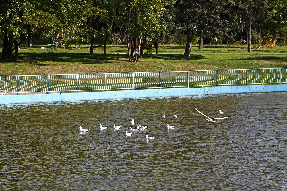 В парке Победы по-прежнему много птиц. Утки и лебеди, чайки и голуби — все готовятся к предстоящим холодам. К слову, по прогнозам синоптиков, в ближайшее дни тоже будет сухо, а вот со среды — снова дожди. Фото Сергея Смоленцева