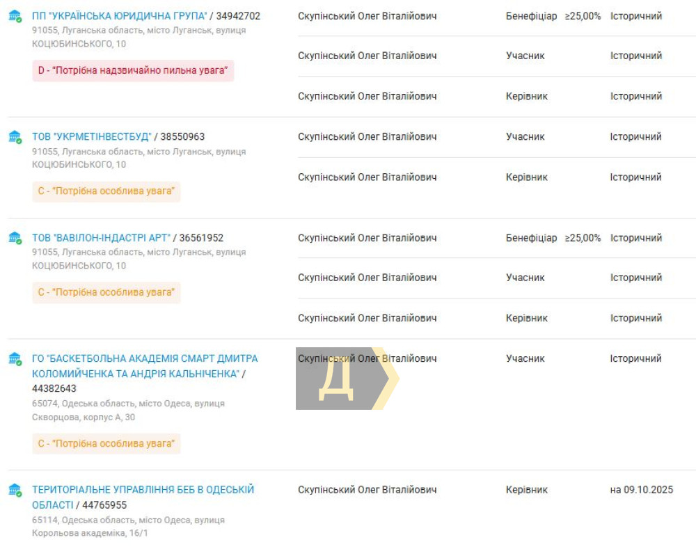 Після кефіру — кайданки: заступника директора одеського БЕБ викрили на співпраці з рфЗаступника керівника Бюро економічної безпеки в Одеській області, причетного до співпраці з росією, викрили в Одесі правоохоронці. Як повідомили в обласній прокуратурі, посадовець є співзасновником підприємства, яке з 2013 року працювало на території Луганської області. За даними джерел «Думської», мова йде про Олега Скупінського. Як з'ясувало слідство, після початку повномасштабної війни росії проти України він не лише не вийшов із бізнесу, а й продовжив отримувати прибуток. Підприємство нині діє на окупованій території, сплачує податки до бюджету рф і фактично фінансує агресію проти України. На сайті компанії розміщують матеріали із закликами підтримувати російських військових та збирати гроші для окупаційних сил. Разом із ним затримали бізнесмена з Дніпра, який також володіє часткою в цій компанії. Обом уже повідомили про підозру у співпраці з державою-агресором. Раніше Скупінському належали частки в «Українській юридичній групі», ТОВ «Укрметінвестбуд», ТОВ «Вавілон-індастрі Арт». Усі фірми з луганською пропискою. Раніше Скупінського вже обвинувачували у співпраці з росією, але неофіційно. Скандал розгорівся ще у 2018 році. Тоді громадськість відреагувала на його прагнення стати суддею Вищого антикорупційного суду. Йому закидали відвідування окупованого Криму та окремих районів Донецької та Луганської областей. Начебто там Скупінський зусрічався з особами, близькими до терористів з «ЛНР». На пресконфернцію за участю Скупінського прийшли невідомі люди, які облили чоловіка кефіром. Відомо, що затриманий родом з Луганська. СМЕРТЬ РОСІЙСЬКИМ ОКУПАНТАМ! Помітили помилку? Виділяйте слова з помилкою та натискайте control-enter |