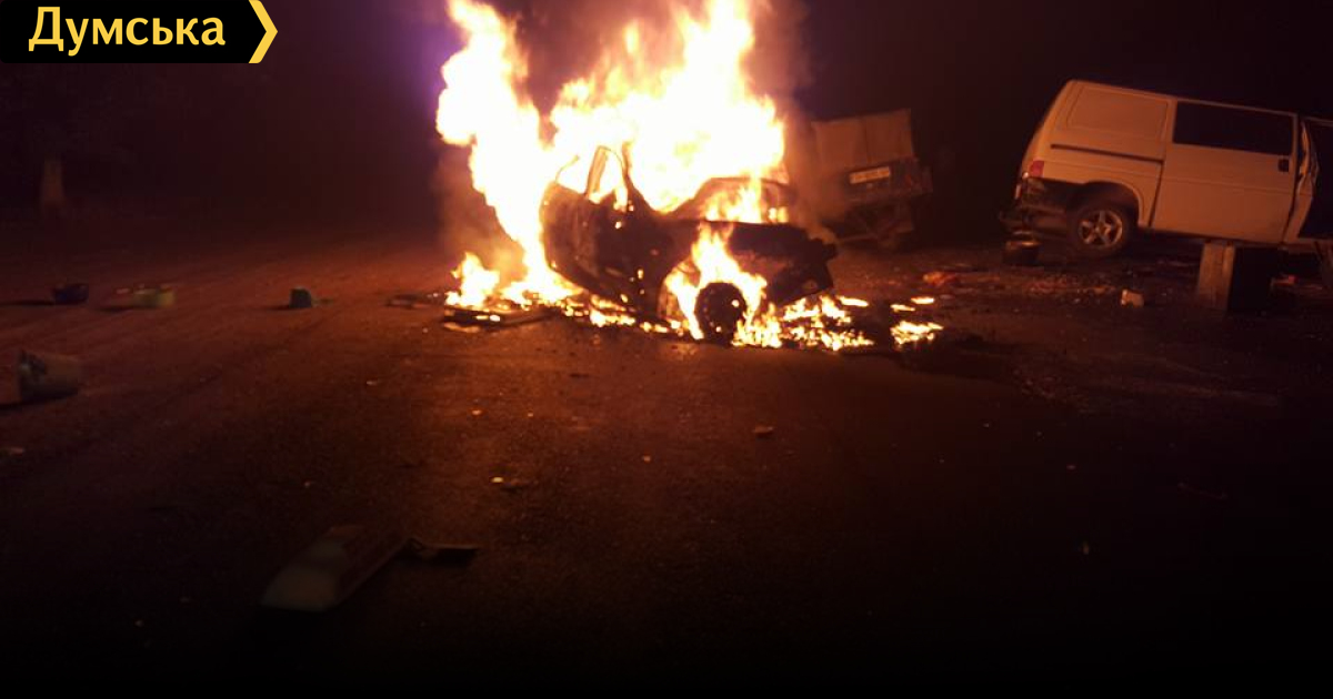 После лобового столкновения на трассе «Одесса-Рени» загорелось такси: три человека погибли