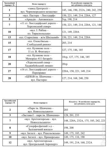 Після обстрілу в Одесі не ходить електротранспорт і частина електричокГромадський електротранспорт в Одесі сьогодні не працює, також припинено рух низки приміських поїздів. У мерії повідомили, що всі тягові підстанції міста наразі знеструмлені. У зв'язку з цим, за маршрутом трамвая №1 посилено роботу громадського транспорту, що курсує просп. Князя Володимира Великого та Миколаївською дорогою. За маршрутом трамвая №5 – забезпечено роботу одного автобуса на ділянці від залізничного вокзалу до Аркадії (через Французький бульвар) та у зворотному напрямку. Інтервал руху — 60 хвилин. За маршрутом трамвая №18 – ходить автобус на ділянці «11 ст. Великого Фонтану – 16 ст. Великого Фонтану». Інтервал руху — 60 хвилин. За маршрутом трамвая №20 – забезпечено роботу одного автобуса. Інтервал руху – 60 хвилин. За маршрутом тролейбуса № 8 – пустили автобуси маршруту № 208 на ділянці «Залізничний вокзал – Суперфосфатний завод». Інтервал руху – 30–40 хвилин. За маршрутом тролейбуса №3 – забезпечено роботу автобусів маршруту №233 на ділянці «Застава І – парк ім. Шевченка». Інтервал руху – 20–30 хвилин. Зазначається, що приватні перевізники вивели на лінії більше маршруток. Крім того, у зв'язку з ліквідацією наслідків обстрілів на Одещині «Укрзалізниця» вносить зміни до розкладу приміського руху на найближчі дні. Сьогодні тимчасово не курсуватимуть електрички: • №6401 Колосівка — Одеса-Головна; • №6253 Подільськ – Одеса-Головна; • №6208 Одеса-Головна – Роздільна 1; • №6207 Роздільна 1 – Одеса-Головна. СМЕРТЬ РОСІЙСЬКИМ ОКУПАНТАМ! Помітили помилку? Виділяйте слова з помилкою та натискайте control-enter |