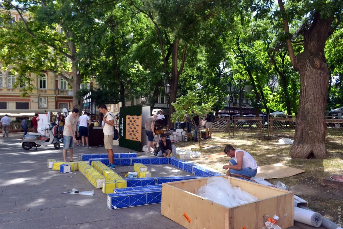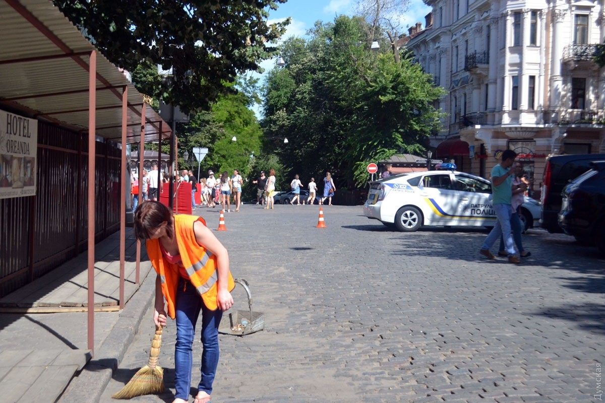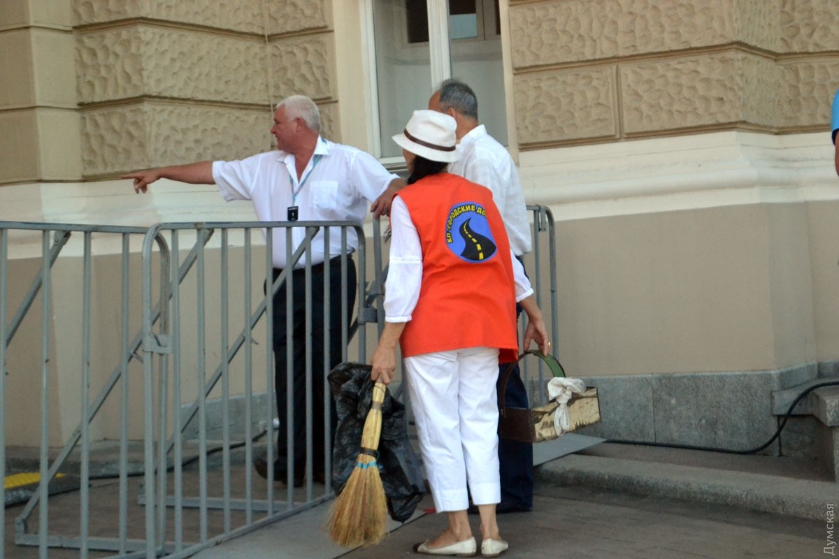 Приготовления к красной дорожке ОМКФ: селфи возле Оперного, метущие дворники и горы мусора у черного входа в театрКорреспондент «Думской» за несколько часов перед открытием Одесского международного кинофестиваля проинспектировал Театральную площадь и проверил последние приготовления к церемонии. Уже днем в центре города из-за главного культурного события года скапливались пробки -прилегающие к Оперному театру улицы перекрыты сотрудниками патрульной полиции. Технический персонал продолжает подключать оборудование, молодые люди с бейджами «оргкомитет» и озадаченным видом носятся вокруг. Пользуясь случаем, успевают сделать селфи возле пустынной красной дорожки молодые девушки. Не скучают и дворники, которые подметают прилегающую территорию. Не забыли коммунальщики вымыть и проход в знаменитый двор Пале-Рояля, где по окончании церемонии состоится праздничный фуршет. Тем временем мусорные баки, расположенные на другой стороне Оперного в переулке Чайковского, переполнены, а у биотуалетов, установленных неподалеку, уже выстроились очереди из нарядных гуляющих. Возможно, это первые гости фестиваля, которые до открытия решили побродить по городу. Фото — Андрей Колисниченко СМЕРТЬ РОСІЙСЬКИМ ОКУПАНТАМ! Помітили помилку? Виділяйте слова з помилкою та натискайте control-enter |