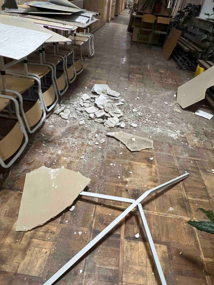Крім того, постраждали два навчальні заклади. Там пошкоджено стелі, коридори, актові зали та навчальні кабінети. Загальна площа руйнувань – понад 280 кв. м. На стінах з'явилися тріщини, обвалена штукатурка.