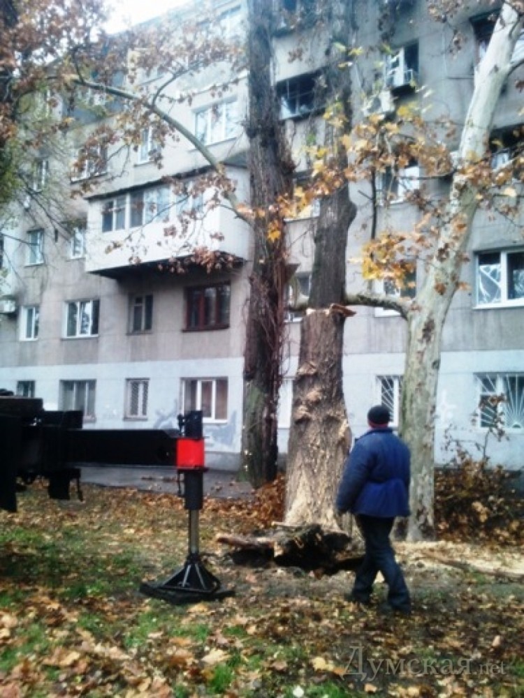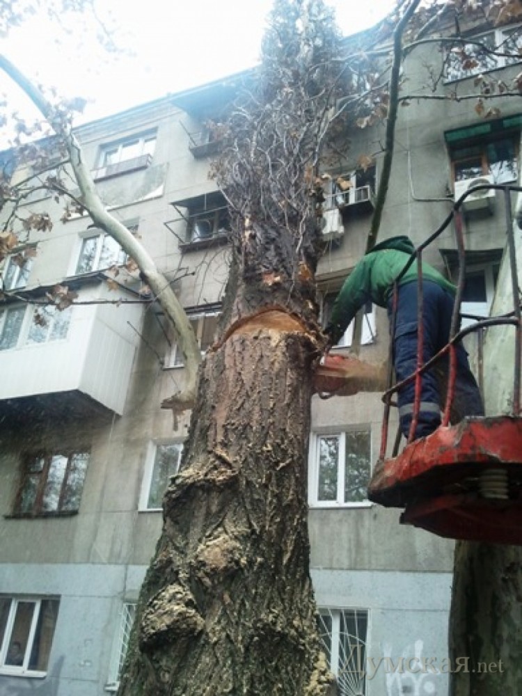 Среди них есть и сложные случаи. Например, возле общежития, расположено в доме №5 по Сегедской, упали два огромных тополя. Деревья завалились на фасад здания. Чтобы убрать их на место прибыли пять сотрудников аварийной бригады коммунального предприятия «Горзелентрест», телескопическая вышка и подъемный кран. За два часа работы опасность была устранена. «Это нерядовой случай повышенной сложности. Дело в том, что просто спилить два дерева было нельзя: гигантские стволы в этом случае повалились бы на балконы и рухнули бы на пешеходную и проезжую зоны. Более того, очень большая высота тополей не позволяла использовать вышку. Понадобилась техника посерьезнее», — отметил директор КП Александр Риффа. По его словам, на контроле аварийной бригады предприятия еще несколько сложных адресов. На Фонтанской дороге, 105 жители дома остались без воды. Водоканалу проводить ремонтные работы мешает дерево, влажная крона которого цепляет 10-тикиловольтную линию электропередач. Сюда дополнительно вызвана бригада «Облэнерго». Еще один проблемный адрес – Дмитрия Донского, 7. Здесь дерево «повисло» на электропроводах. Напомним, напомним ураган 3 декабря сломал в Одессе более 80-ти деревьев и веток. фото:«www.odessa.ua»
