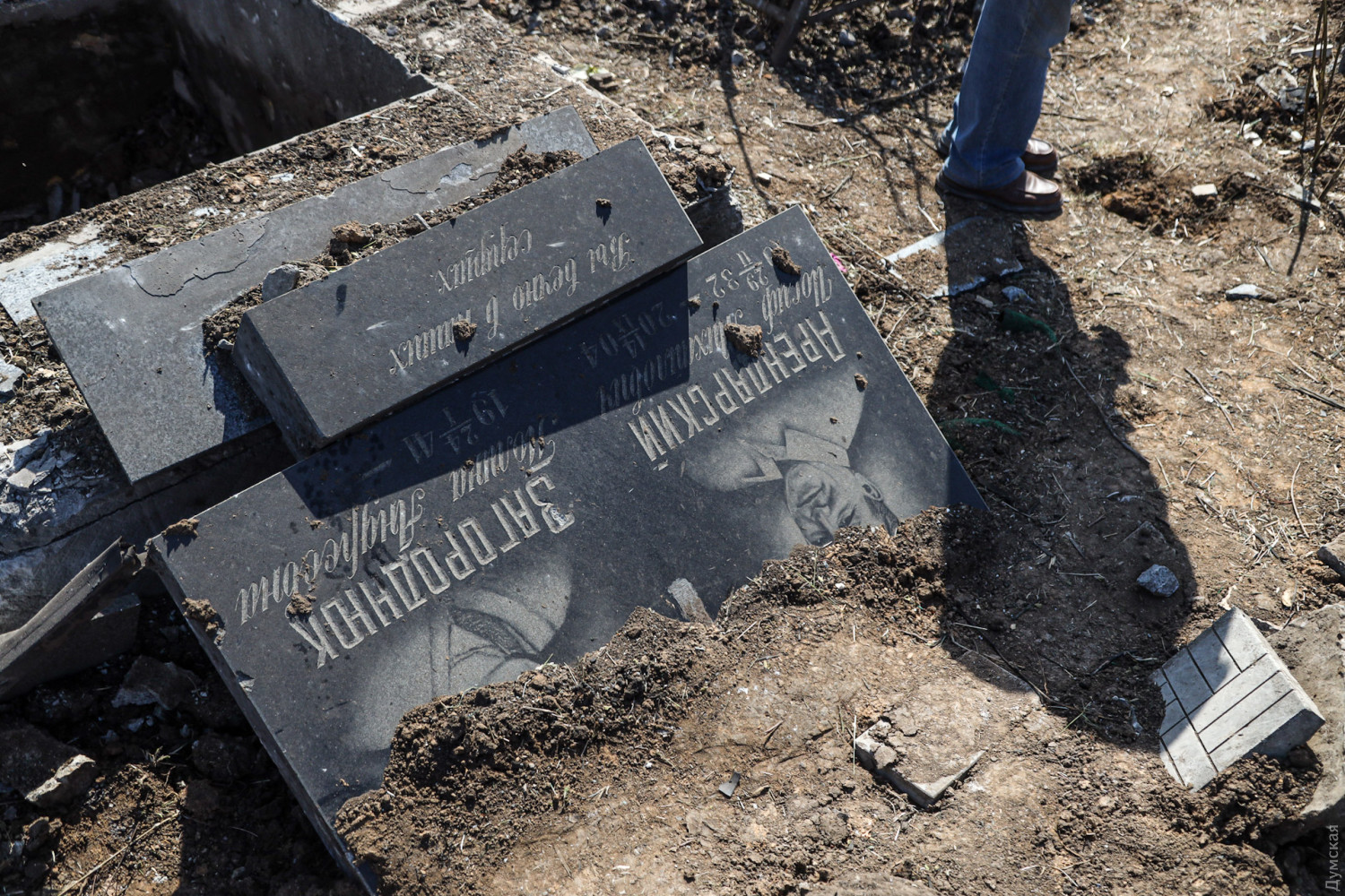 Обстрел одесского кладбища: уничтожено несколько десятков могил, пострадала женщинаТаировское (Ново-Городское) кладбище Одессы, пережившее ракетный обстрел российских нацистов, посетил корреспондент «Думской». Это еще один объект, который оккупанты поразили 23 апреля так называемым высокоточным оружием. В результате авиаудара уничтожено несколько десятков могил одесситов, а посреди участка зияет воронка диаметром более пяти метров. Серьезные ранения получила женщина, убиравшая могилу родственницы. Ее в тяжелом состоянии с рваными ранами и контузией доставили в одно из лечебных учреждений города. Горожане уже приходят на погост, чтобы попытаться убрать последствия взрыва, однако некоторые могилы буквально испарились. У Анатолия пострадала могила тещи. «Нет памятника, только небольшую часть смог найти, — рассказывает мужчина. — Галина Александровна покоится здесь, настоящая одесситка была. Сволочи и подонки, что тут сказать. Не представляю, что было бы, если бы это случилось на проводы». У Олега взрывом снесло четыре могилы родственников. «Деду памятник снесло начисто, — рассказывает мужчина, по иронии судьбы проживающий недалеко от пострадавшего дома. — В конце весны собирались ставить бабушке, матери и отцу. Но уже не судьба». Напомним, в результате вчерашнего обстрела Одессы российскими нацистами ракетами было разрушено более тысячи кв. м погребального комплекса. Также оккупанты ударили по жилой многоэтажке. Погибли семь жильцов дома, в том числе трехмесячная девочка. СМЕРТЬ РОСІЙСЬКИМ ОКУПАНТАМ! Помітили помилку? Виділяйте слова з помилкою та натискайте control-enter |
