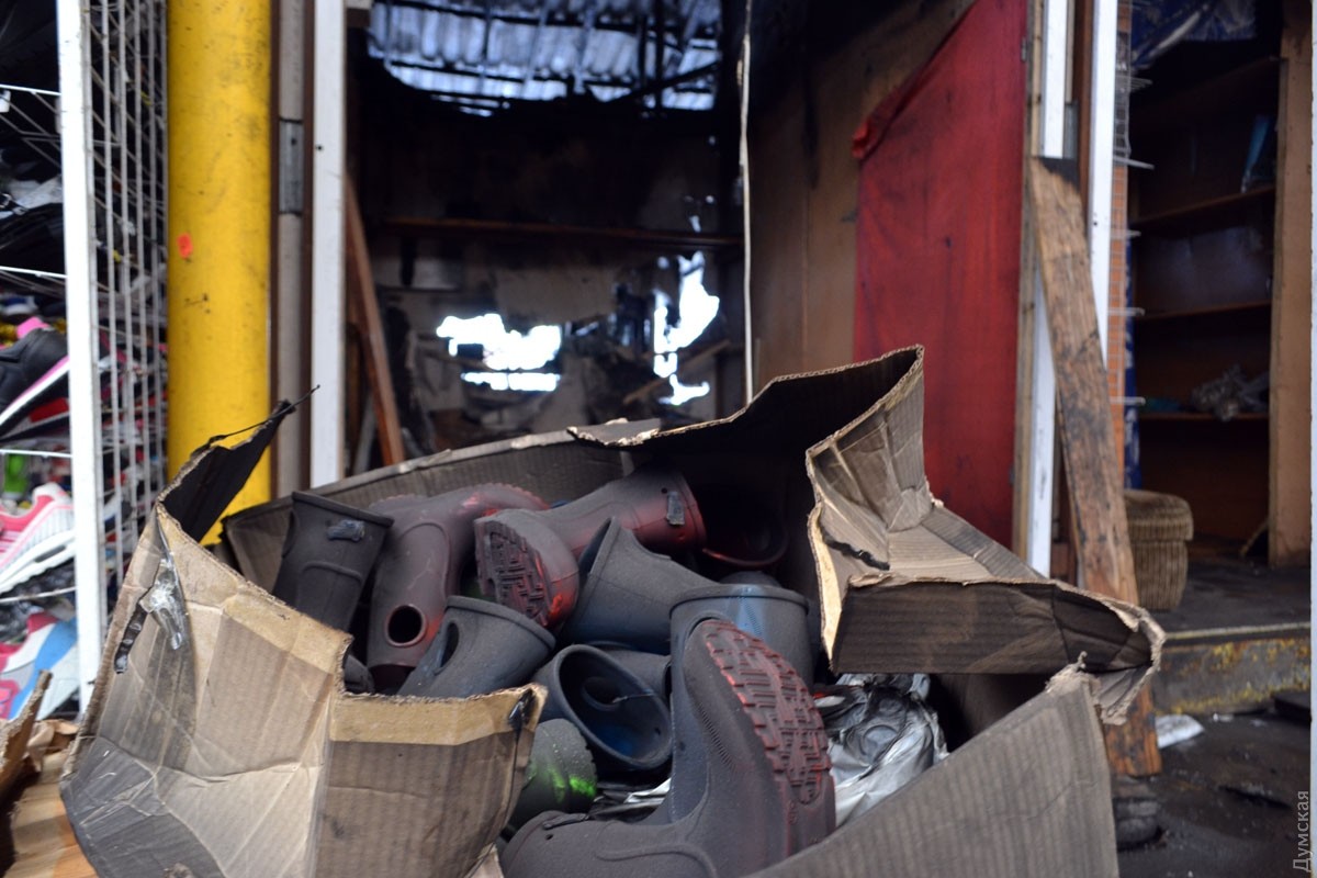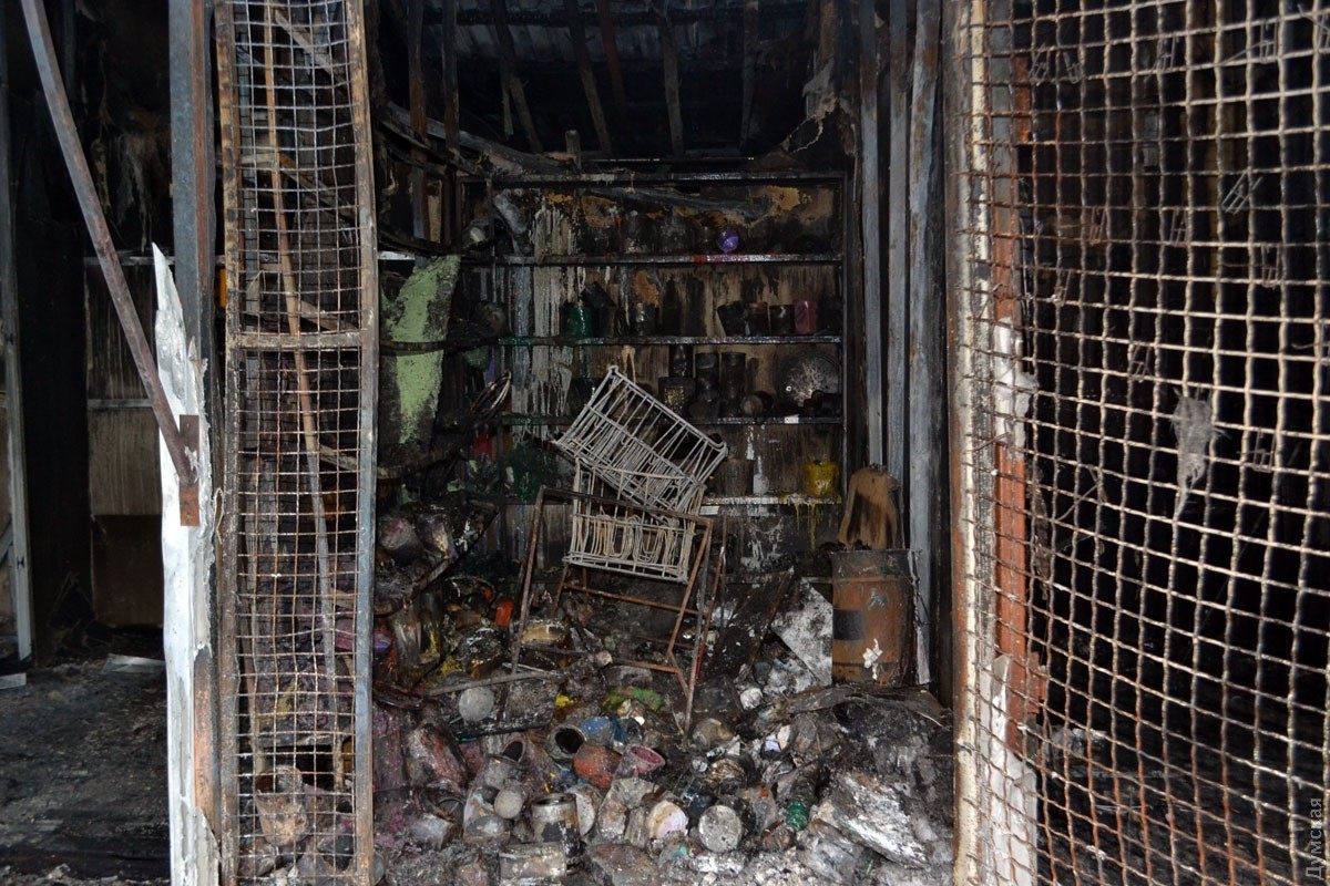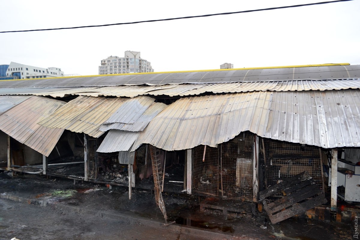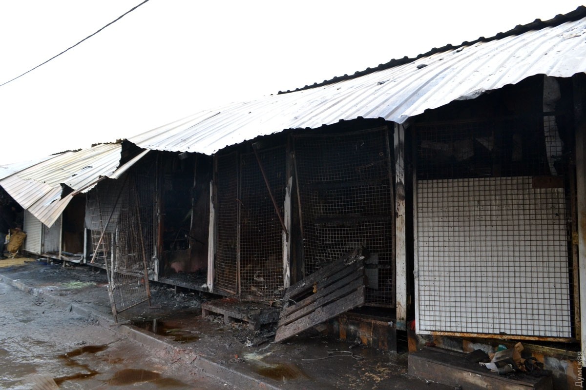 Корреспондент «Думской» побывал на Привозе, где вчера был масштабный пожар. В результате ЧП, напомним, сгорело 10 торговых павильонов на площади в 50 квадратных метров.