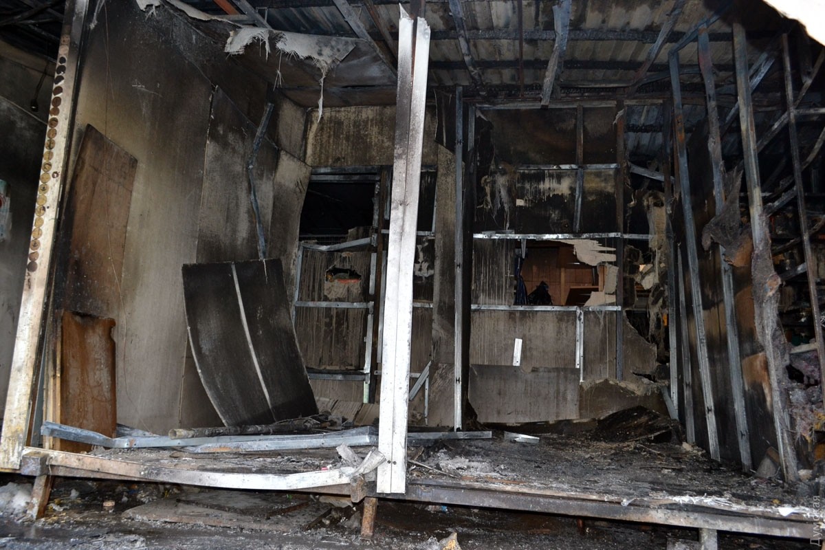 Последствия пожара на Привозе: в сгоревших павильонах орудуют мародеры