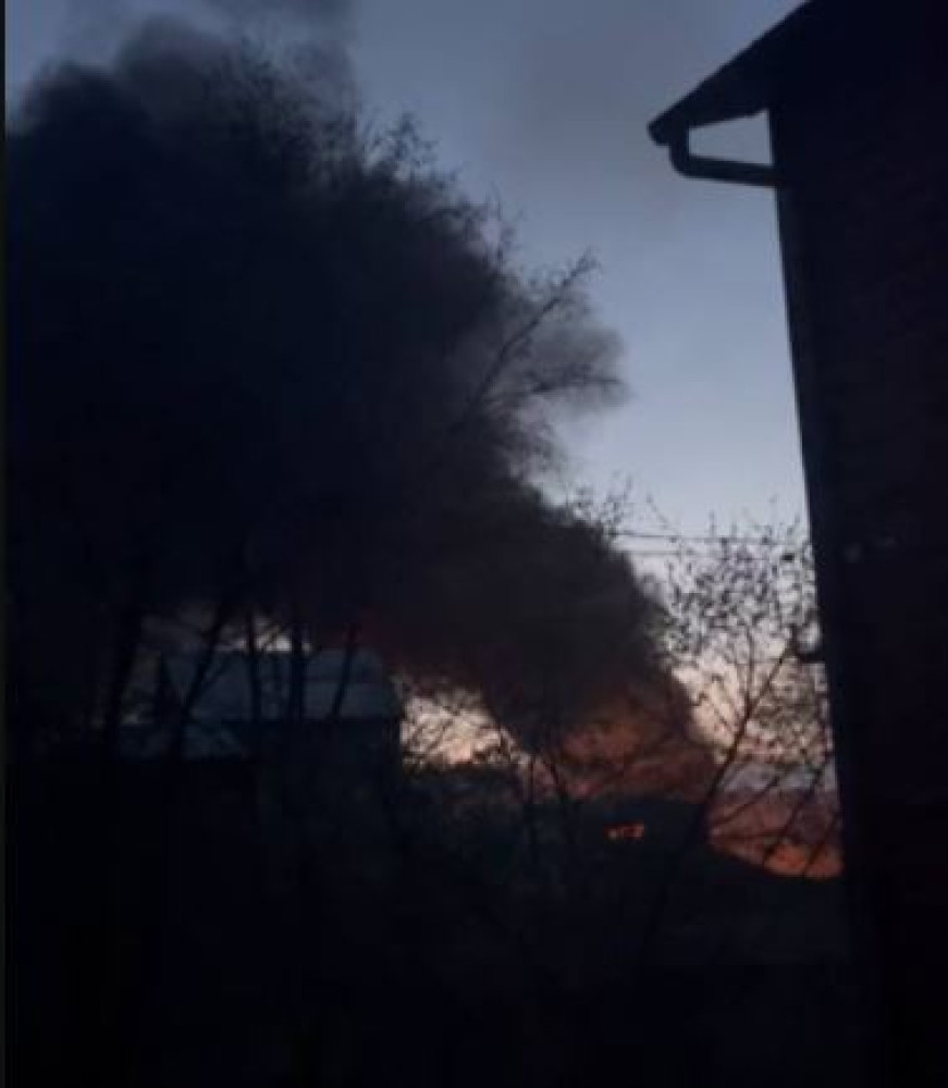 В этом помещении был пожар вследствие атаки. Спасатели до сих пор проливают.