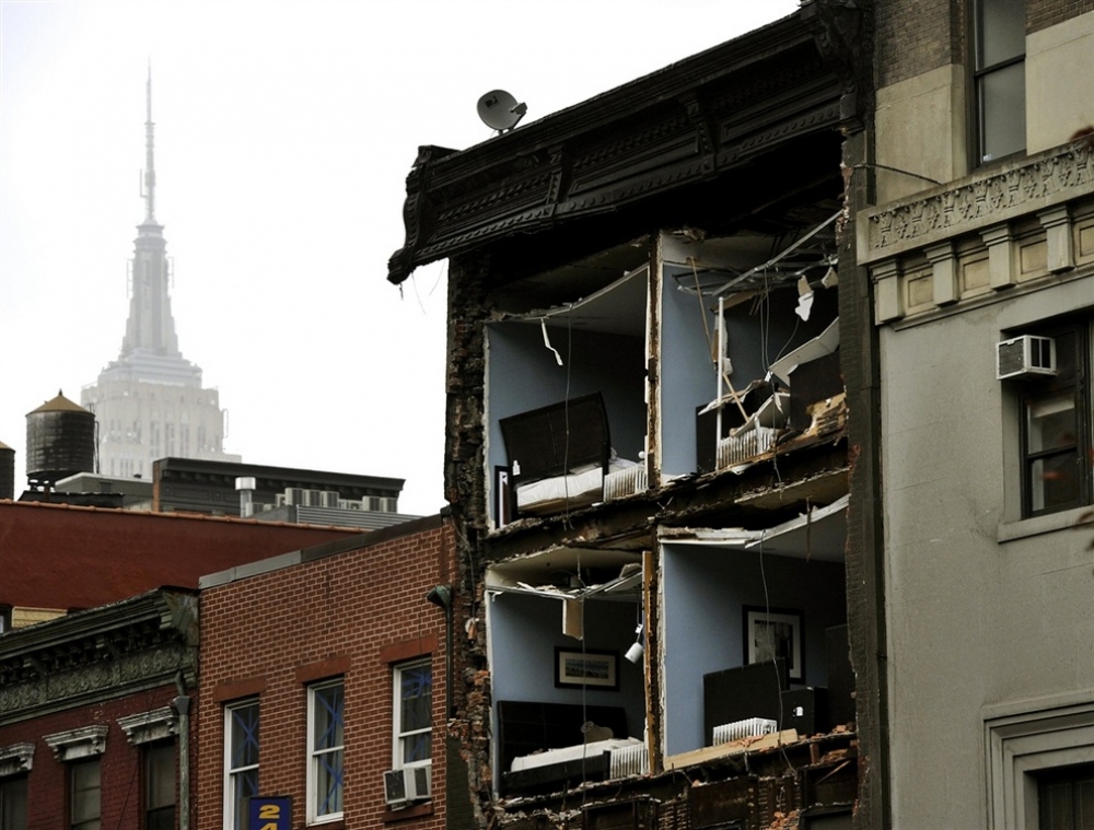 Опасно торчащая стальная арматура в Бруклине. (AP Photo/Bebeto Matthews)