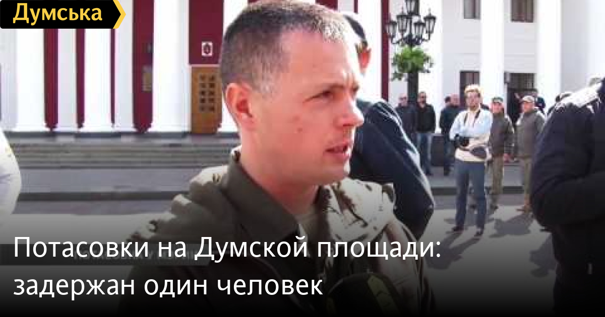 Потасовки на Думской площади. В результате противостояния активистов «Союза воинов АТО» и бойцов муниципальной охраны задержан один человек. Проукраинские активисты в очередной раз пытались установить на площади палатку.
