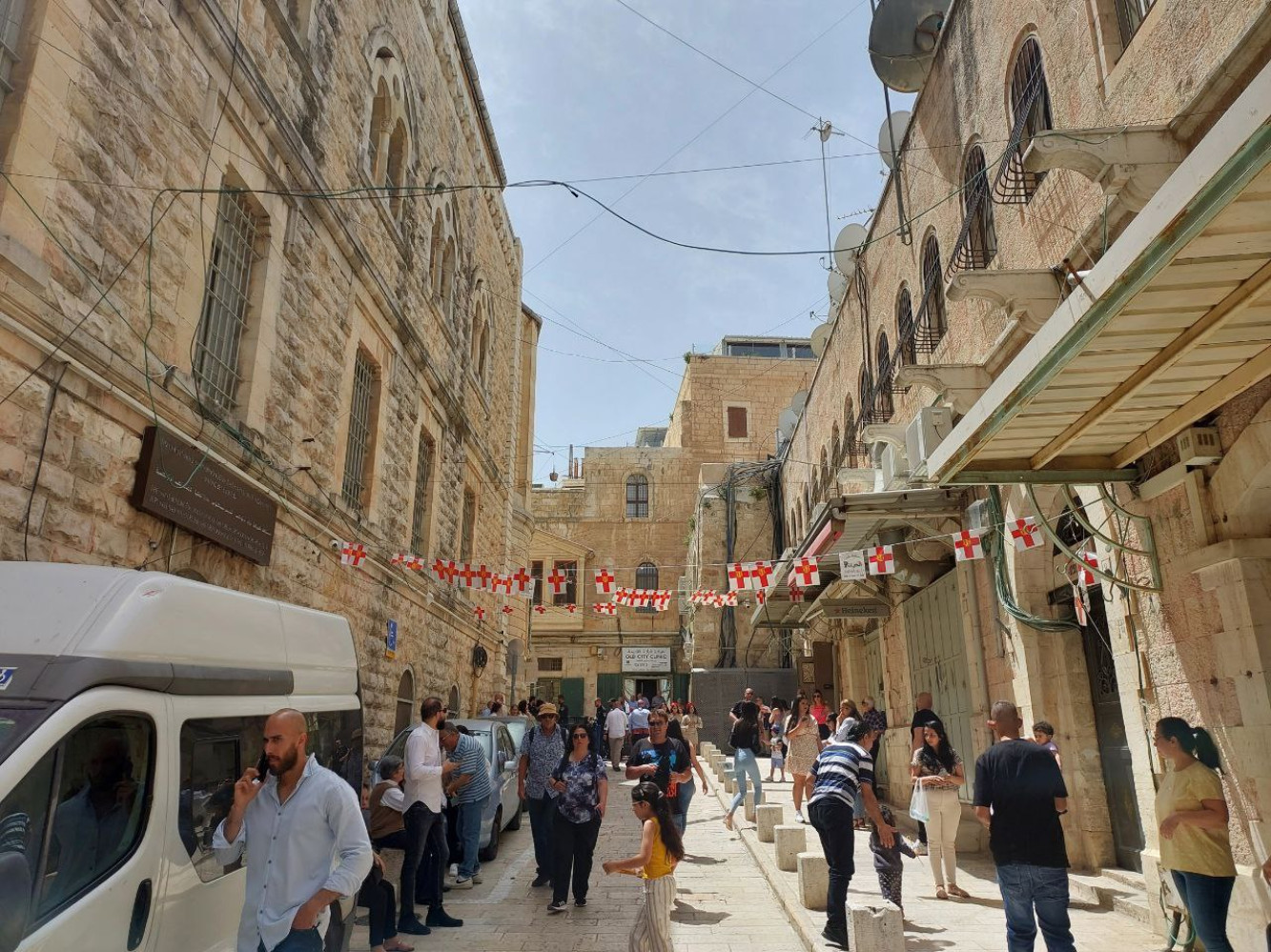 Попав в Старый город, сразу погружаешься в атмосферу праздника: шествие скаутов с музыкой и в сопровождении верующих, смеющиеся люди, молодежь из местной христианской организации, которая своей игрой на инструментах и песнями не оставляла возможности остаться в стороне от общего духа празднования.