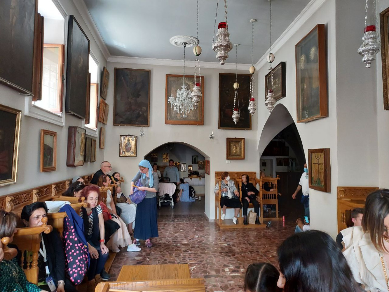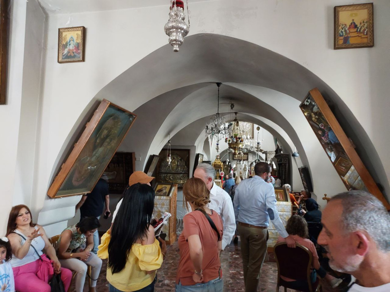 В ожидании чуда верующих развлекали песнями, под которые многие невольно пускались в пляс. Большинство не пугала даже 30-градусная жара и многочасовое стояние под палящим солнцем. Те же, кто хотел спрятаться от знойной погоды, могли найти укрытие в стенах небольшой греческой церкви.