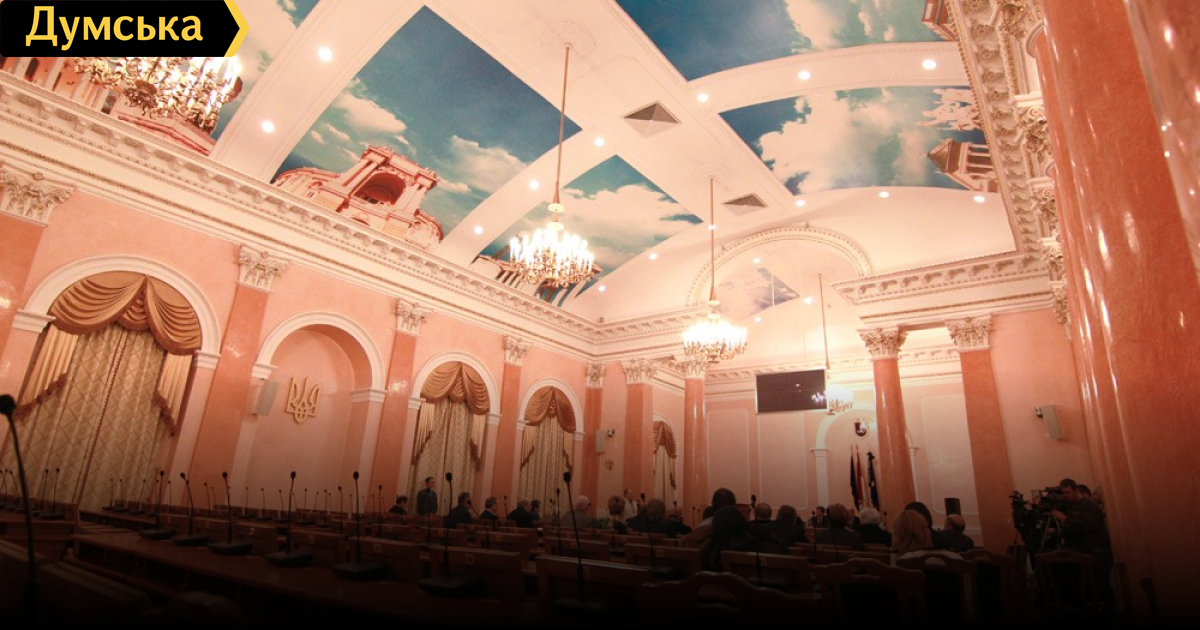 В самом конце сегодняшнего заседания сессии Одесского городского совета, традиционно проводившейся в Большом сессионном зале, мэр Одессы Алексей Костусев попросил депутатов, чиновников и присутствующих журналистов не расходиться, а «внимательно посмотреть на потолок». «Посмотрите в последний раз на этот потолок, на эти дешевые фотообои, которые повесили рядом с красивой лепниной и позолотой. Когда мы встретимся вновь, этого больше не будет, а потолок будет приведен в нормальный вид», — заявил одесский городской голова.