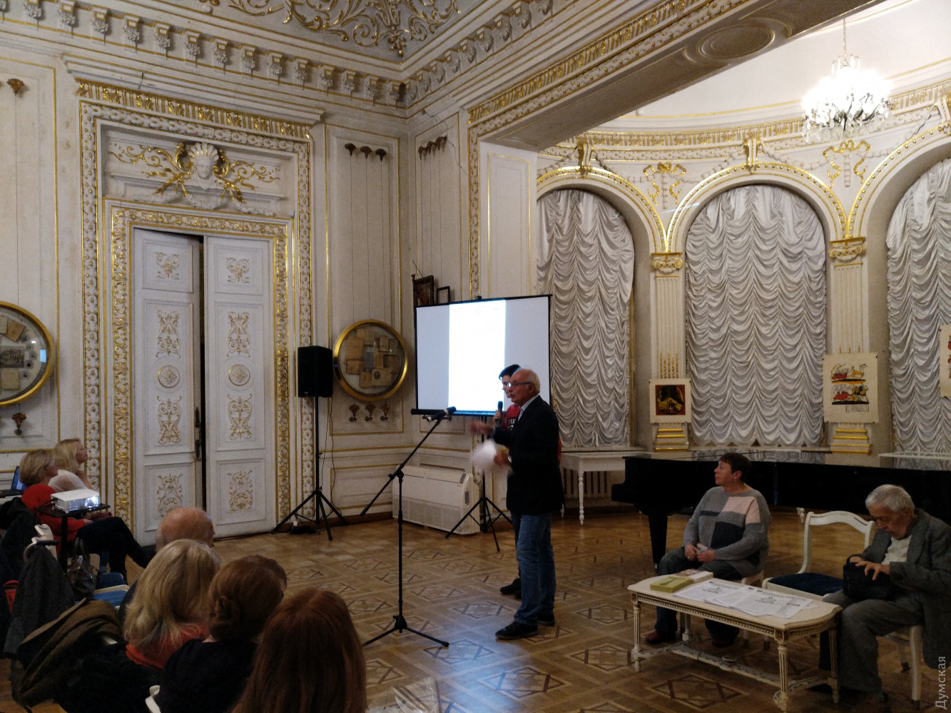 В Золотом зале литературного музея состоялась встреча с потомками семьи Крахмальниковых, которой принадлежала самая известная кондитерская фабрика Одессы. Потомственные кондитеры приехали на историческую родину из Италии и рассказали, как они продолжают традиции своих предков и какие артефакты хранятся в их домашней коллекции.