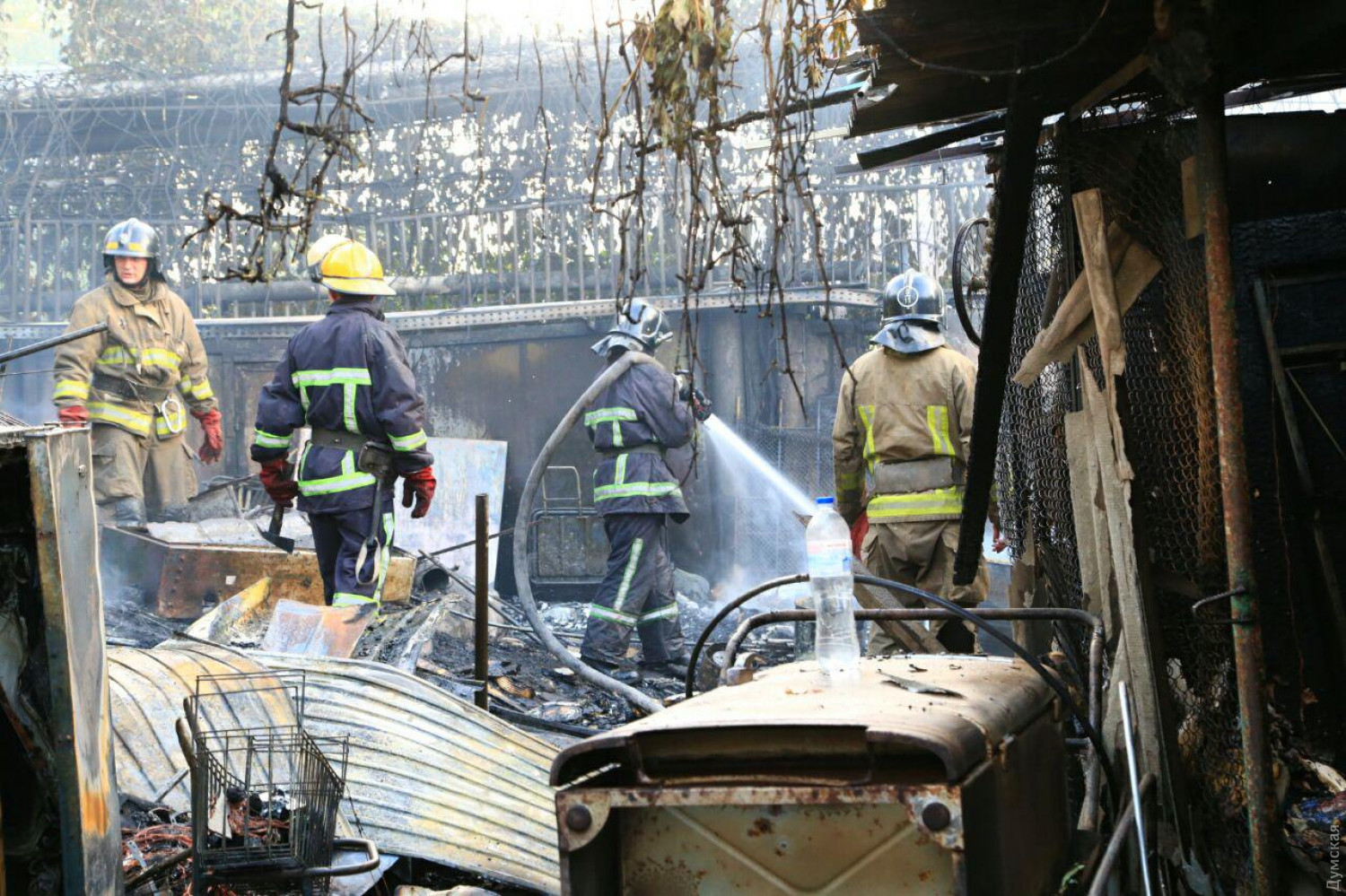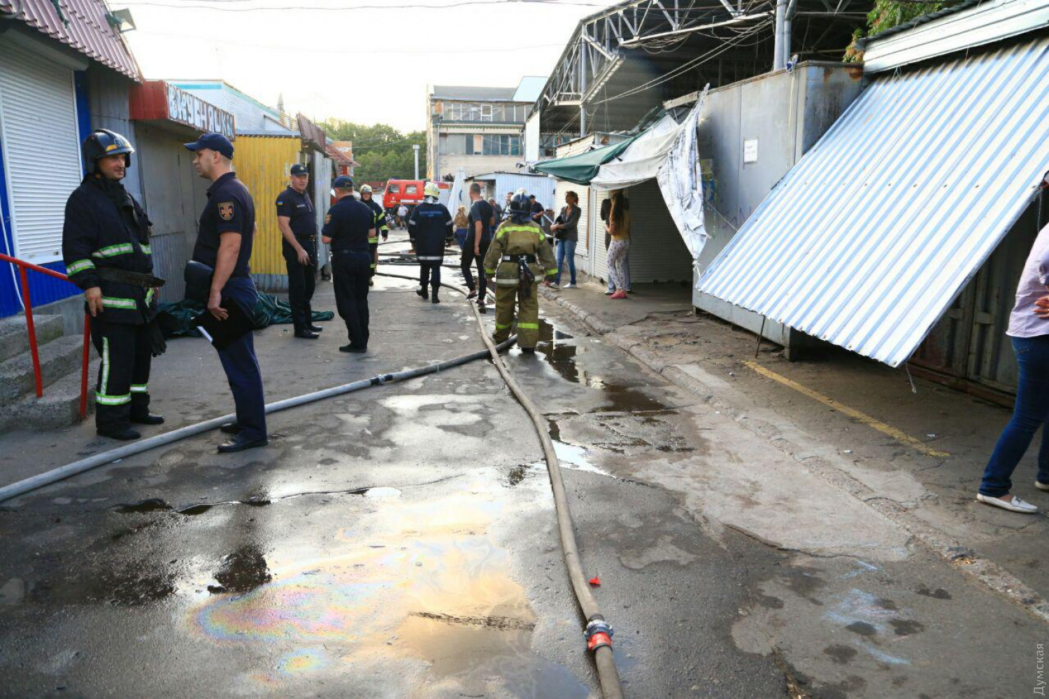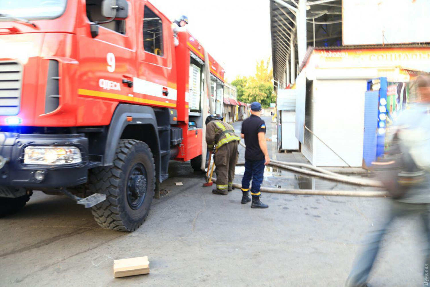 Пожар на рынке Черемушки: первыми на борьбу с пламенем бросились дворники с огнетушителямиСегодня днем на рынке Черемушки в Малиновском районе Одессы произошел пожар. Как передает корреспондент «Думской» с места происшествия, возгорание началось в бытовке. По словам работников рынка, запах горящей проводки ощущался на рынке еще с 15 часов, а сам пожар начался около 18-ти. Один из работников зашел в бытовую комнату и увидел искрящие провода и загоревшийся от них картон и другие материалы. Первыми огонь начали тушить дворники. Некоторые из них получили легкие ожоги рук и лица. Однако пламя быстро распространялось, порой достигая 5-7 метров в высоту, по словам очевидцев. «Если бы не они (дворники), здесь бы все сгорело, они вовремя начали тушить огнетушителями, которые были у продавцов», — рассказал один из торговцев. Пожарно-спасательные подразделения прибыли через пять минут после вызова. К тому моменту огонь уже охватил площадь около 100 квадратных метров. Чтобы ликвидировать возгорание, понадобилось примерно 40 минут. Фото Сергея Смоленцева СМЕРТЬ РОСІЙСЬКИМ ОКУПАНТАМ! Помітили помилку? Виділяйте слова з помилкою та натискайте control-enter |