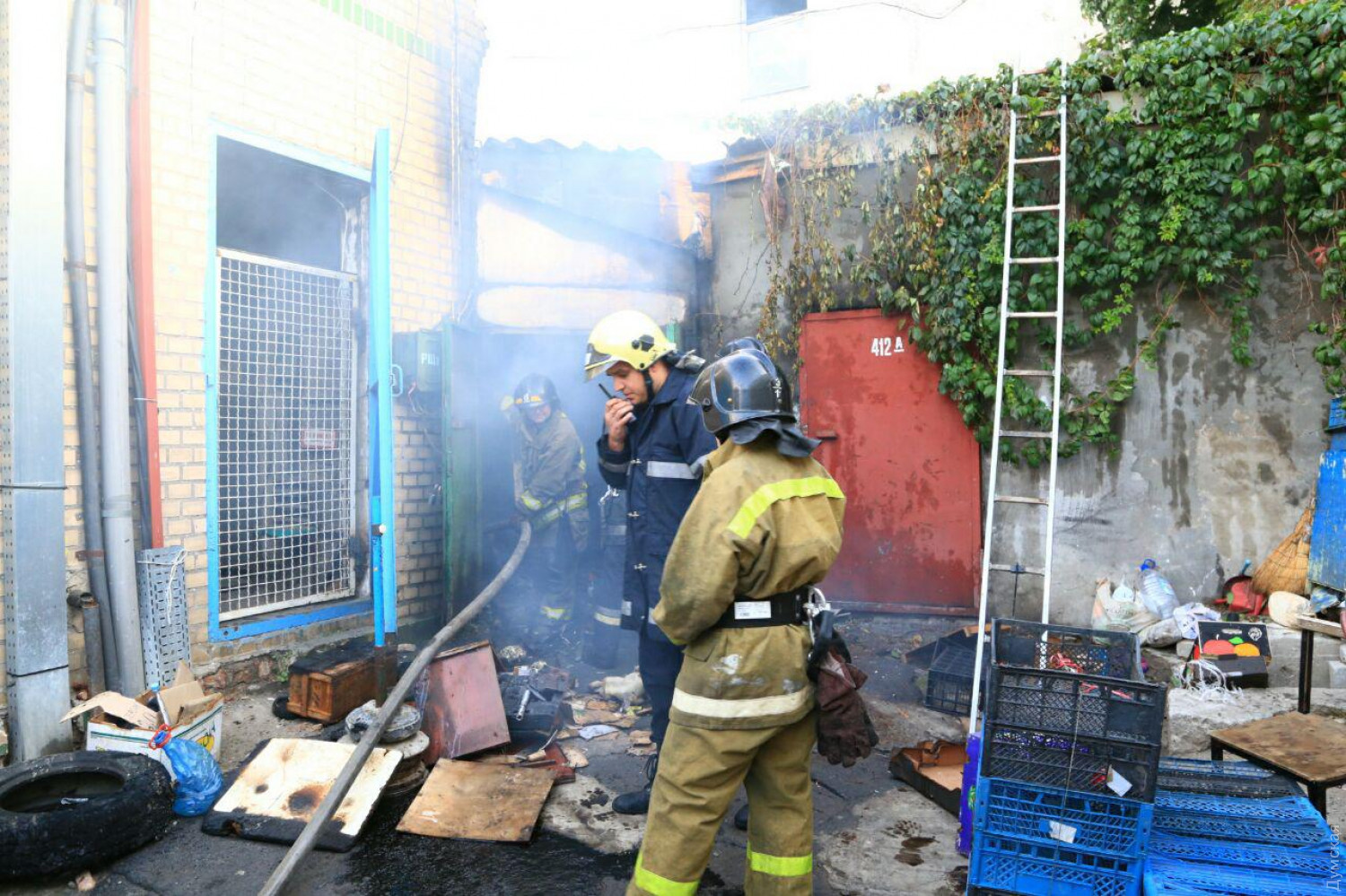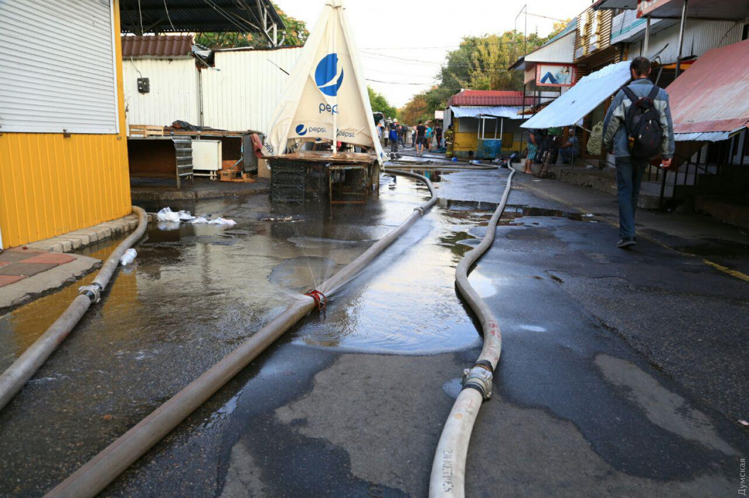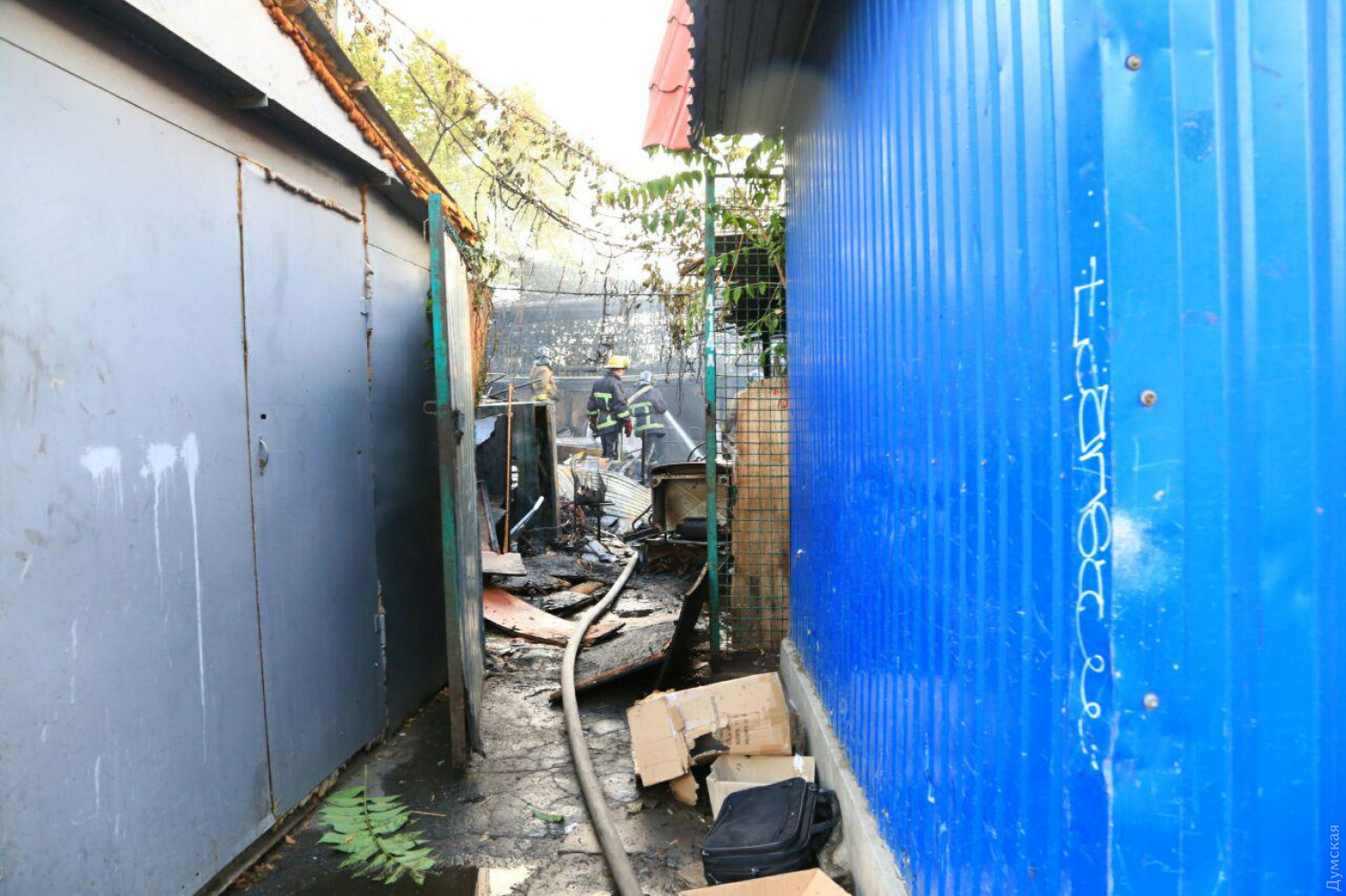 Пожар на рынке Черемушки: первыми на борьбу с пламенем бросились дворники с огнетушителямиСегодня днем на рынке Черемушки в Малиновском районе Одессы произошел пожар. Как передает корреспондент «Думской» с места происшествия, возгорание началось в бытовке. По словам работников рынка, запах горящей проводки ощущался на рынке еще с 15 часов, а сам пожар начался около 18-ти. Один из работников зашел в бытовую комнату и увидел искрящие провода и загоревшийся от них картон и другие материалы. Первыми огонь начали тушить дворники. Некоторые из них получили легкие ожоги рук и лица. Однако пламя быстро распространялось, порой достигая 5-7 метров в высоту, по словам очевидцев. «Если бы не они (дворники), здесь бы все сгорело, они вовремя начали тушить огнетушителями, которые были у продавцов», — рассказал один из торговцев. Пожарно-спасательные подразделения прибыли через пять минут после вызова. К тому моменту огонь уже охватил площадь около 100 квадратных метров. Чтобы ликвидировать возгорание, понадобилось примерно 40 минут. Фото Сергея Смоленцева СМЕРТЬ РОСІЙСЬКИМ ОКУПАНТАМ! Помітили помилку? Виділяйте слова з помилкою та натискайте control-enter |