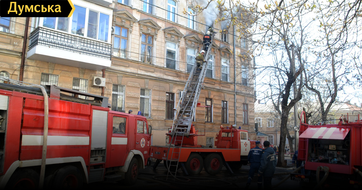 Корреспондент «Думской» побывал на месте масштабного пожара в центре Одессы на пересечении улиц Новосельского и Княжеской.