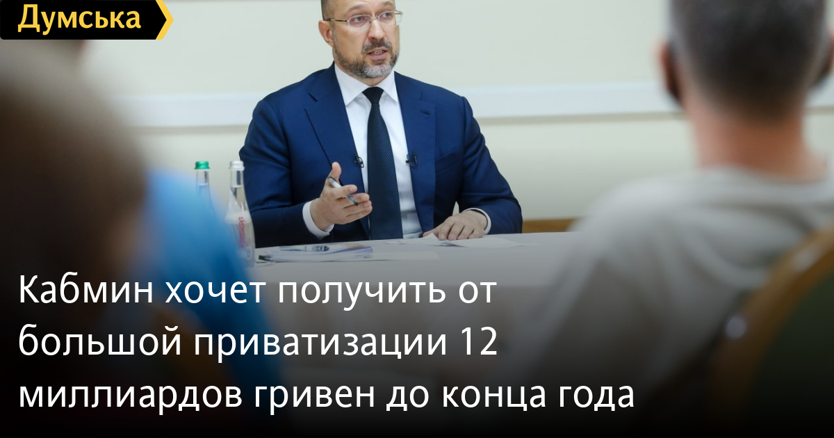 Кабмин хочет получить от большой приватизации 12 миллиардов гривен до конца года12 миллиардов гривен рассчитывает получить до конца 2021 года на продаже государственного имущества в рамках так называемой большой приватизации Кабинет министров Украины. Об этом в ходе пресс-конференции заявил премьер-министр Украины Денис Шмыгаль, сообщает «Суспільне». По его словам, ранее планировалась продажа 12 больших объектов, но из списка исключили шесть теплоэлектроцентралей. Их Фонд госимущества передал в управление НАК «Нафтогаз», чтобы подготовиться к отопительному сезону. «Когда работа и вопросы задолженности на этих предприятиях будут согласованы, произойдет приватизация», — отметил Шмыгаль. СМЕРТЬ РОССИЙСКИМ ОККУПАНТАМ! Заметили ошибку? Выделяйте слова с ошибкой и нажимайте control-enter |