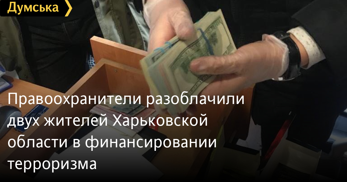 Правоохранители разоблачили двух жителей Харьковской области в финансировании терроризмаПравоохранители сообщили о подозрении двум жителям Харьковской области, которых подозревают в финансировании террористической организации. Об этом сообщила пресс-служба Офиса генерального прокурора. По данным следствия, группа лиц переводила деньги через незаконную систему международных валютных операций. Переводы осуществлялись между лицами в Украине, Сирии, Ираке и других странах. В ходе спецоперации задержали украинца, выходца из Сирии, при получении более семи тысяч долларов, которые предназначались для перевода международной террористической организации. Сейчас задержанному и его сообщнику сообщили о подозрении по ч.2 ст. 28 и ч.1 ст.258-3 Уголовного кодекса Украины (содействие в деятельности террористической организации). По местам жительства фигурантов провели обыски. СМЕРТЬ РОССИЙСКИМ ОККУПАНТАМ! Заметили ошибку? Выделяйте слова с ошибкой и нажимайте control-enter |