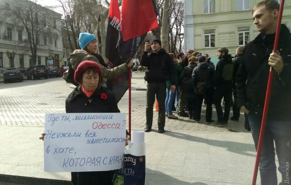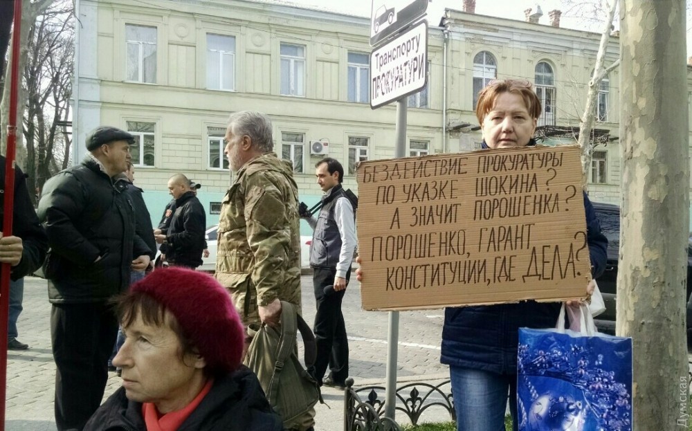 Сегодня, 22 марта, активисты проукраинских общественных организаций пикетировали здание прокуратуры Одесской области и передали обращение заместителю генпрокурора Украины Давиду Сакварелидзе. Поводом для акции стали события в Малиновском суде, где по вине Генеральной прокуратуры разваливается уголовное обвинение в отношении фигурантов «Дела 2 мая».