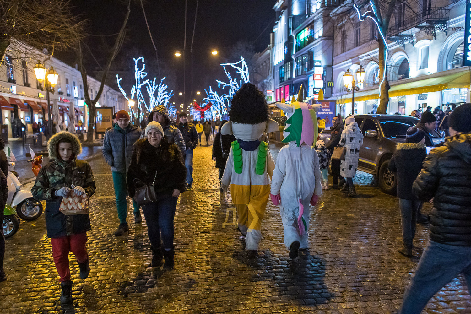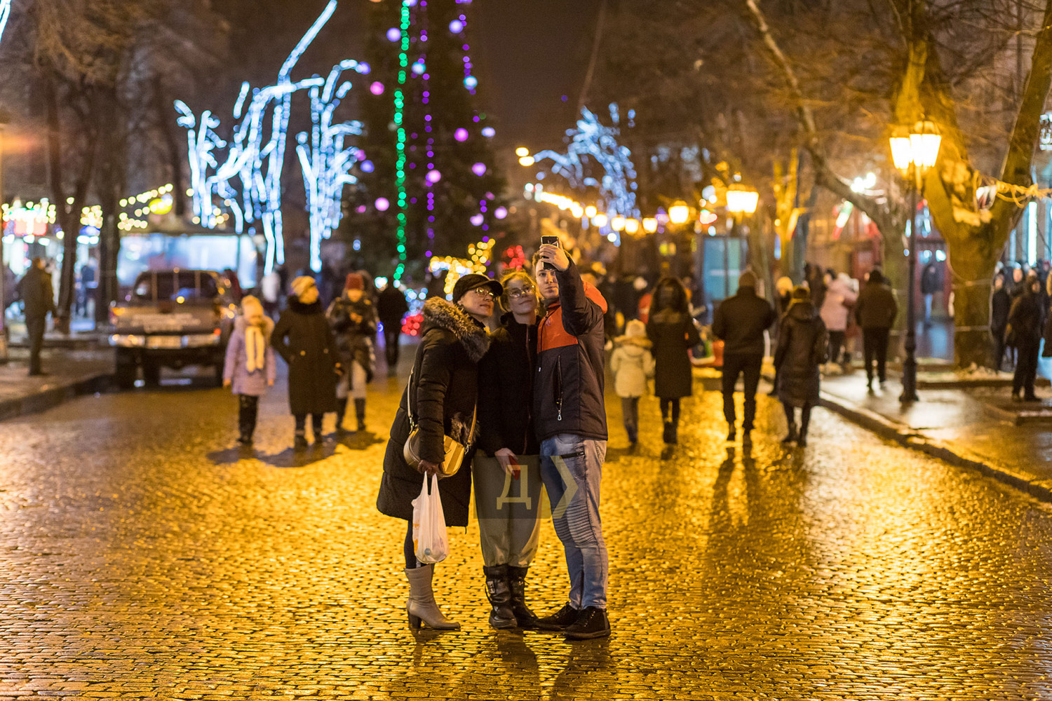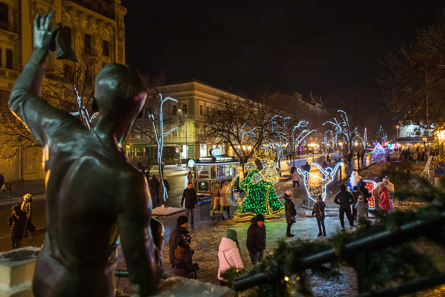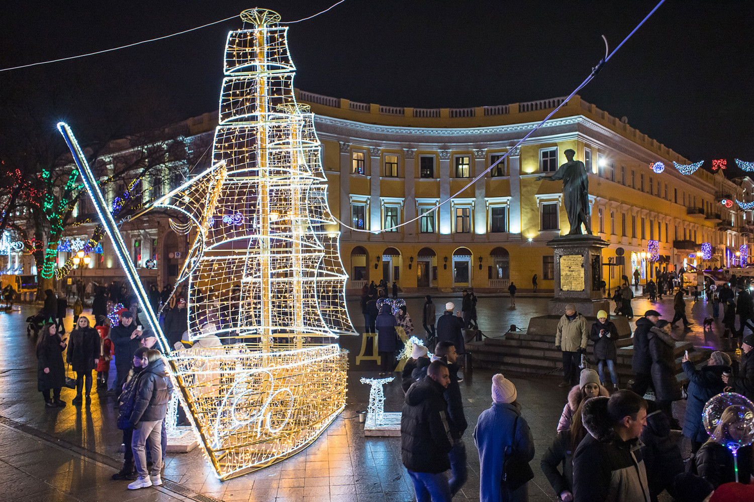 Корреспондент «Думской» прогулялся по вечернему городу, чтобы проникнуться праздничной атмосферой. Центр Одессы полон отдыхающих. Тем более, что тут есть на что посмотреть. Подрядчики успели смонтировать все заявленные светящиеся декорации, и теперь с Потемкинской лестницы скатывается огромная волна, а рядом с Дюком красуется парусник. Центральная клумба возле городского совета украшена светодиодным фонтаном, из центра которого практически выпрыгивает Нептун с трезубцем. Праздничную сцену установили заранее и в половину восьмого там уже разогревались музыканты. Вовсю работают ярмарки, как на Приморском бульваре, так и на Дерибасовской. Самый ходовой товар – глинтвейн и сладости. На главной улице города не протолкнуться. Здесь правят бал ряженые в новогодних персонажей и всевозможные ростовые куклы, требующие за фото с собой несколько гривен. Очень много людей пришли отдохнуть в центр семьями с детьми, а откровенно пьяных маргиналов единицы. Впрочем, даже если они и рискнут нарушать общественный порядок, то их ждет быстрая кара. Мы стали свидетелями довольно внушительного и одновременно романтичного развода военнослужащих Национальной гвардии возле археологического музея. Один из стражей порядка сделал предложение своей девушке прямо перед тем, как отправиться на праздничные улицы оберегать наш с вами покой. С Новым годом! Автор — Александр Гиманов СМЕРТЬ РОСІЙСЬКИМ ОКУПАНТАМ! Помітили помилку? Виділяйте слова з помилкою та натискайте control-enter |