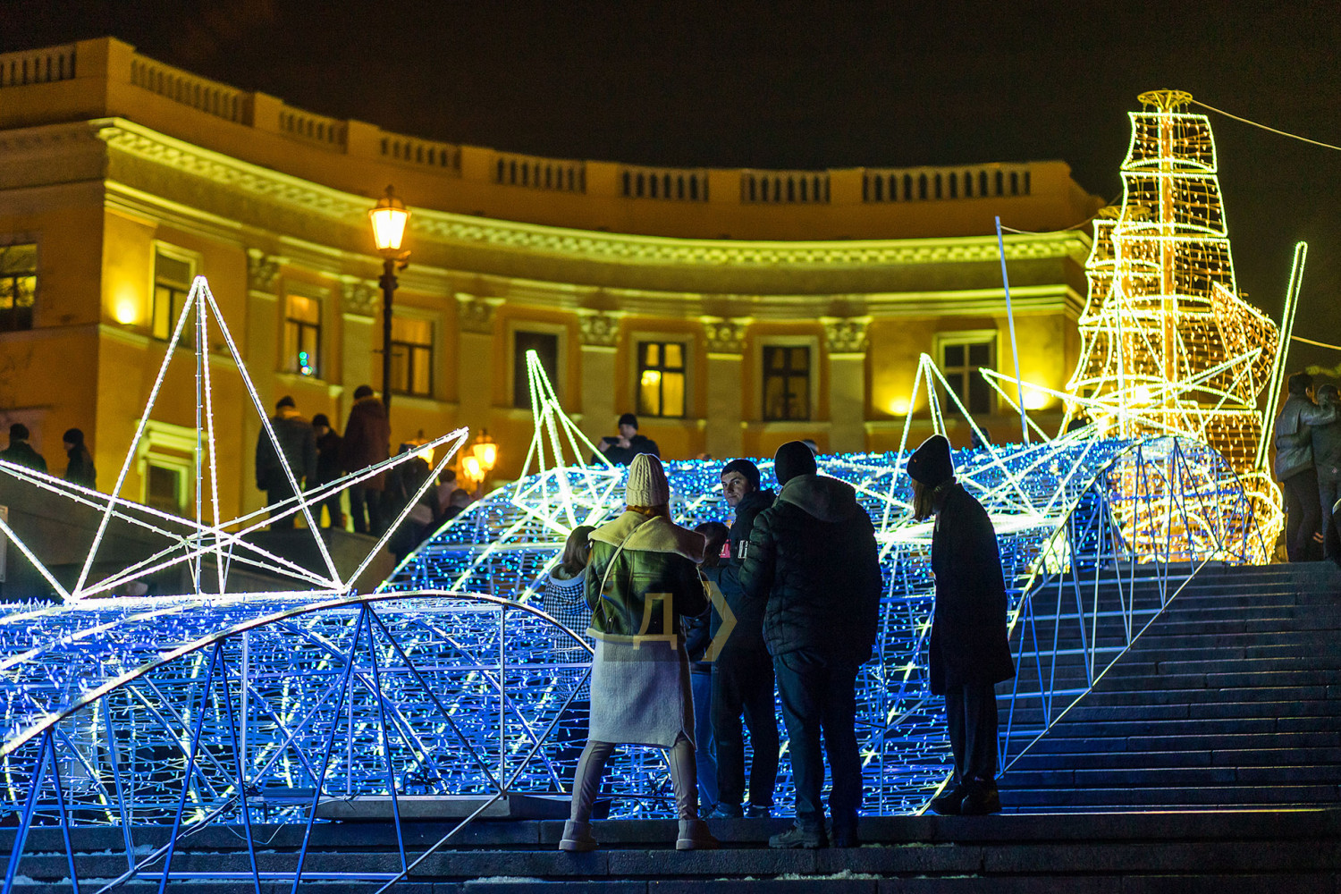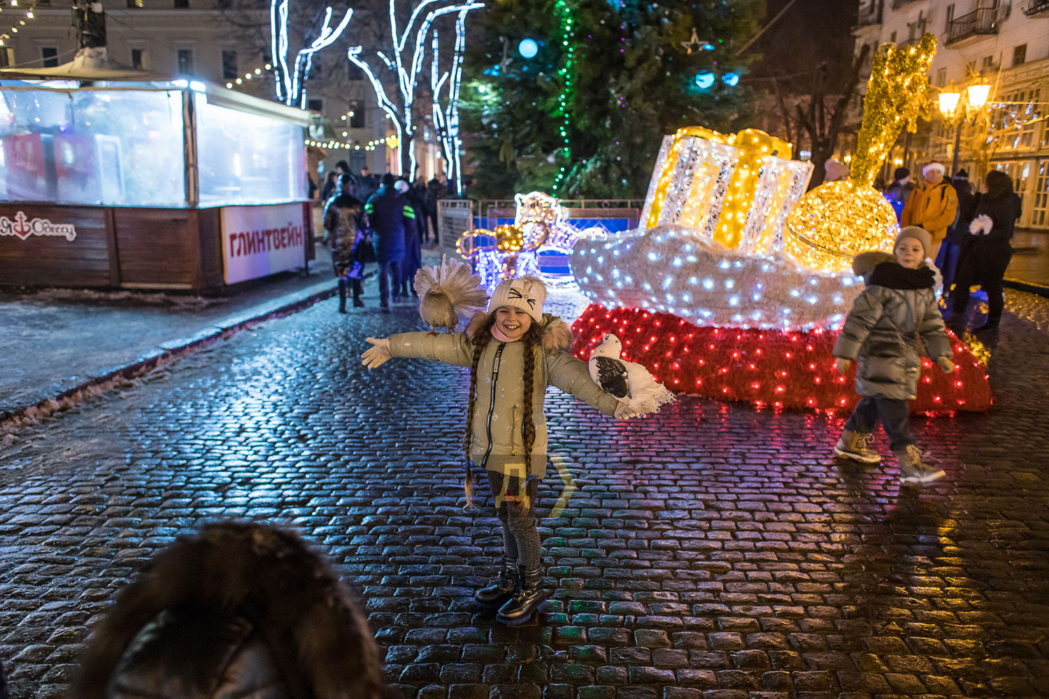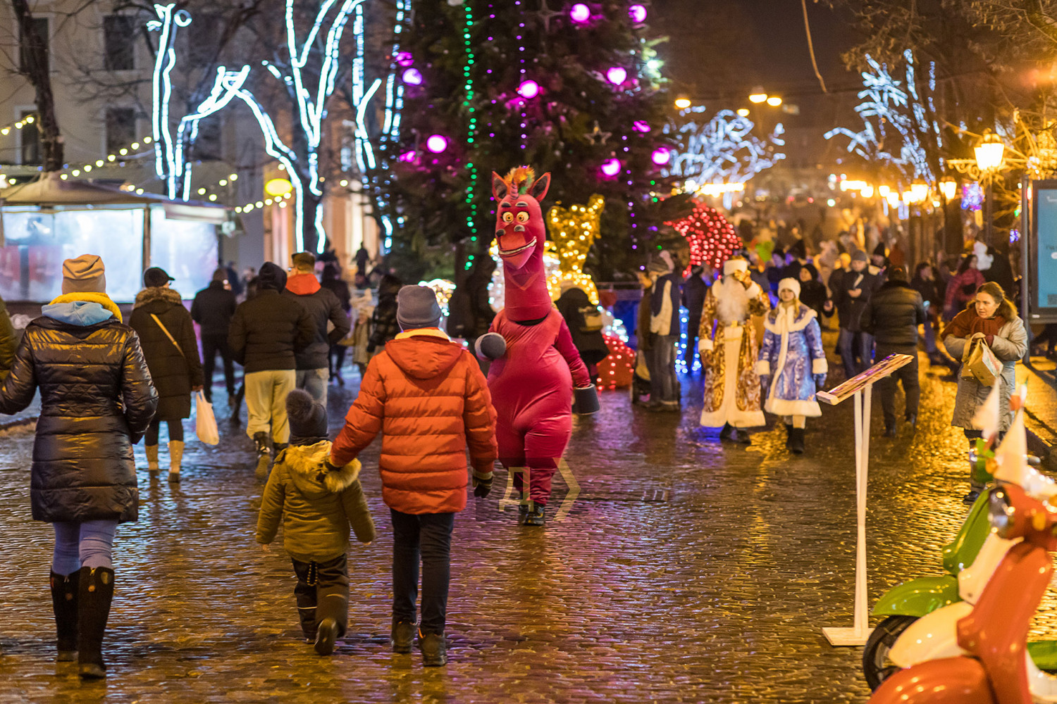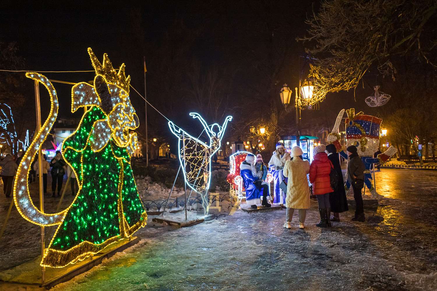 Корреспондент «Думской» прогулялся по вечернему городу, чтобы проникнуться праздничной атмосферой. Центр Одессы полон отдыхающих. Тем более, что тут есть на что посмотреть. Подрядчики успели смонтировать все заявленные светящиеся декорации, и теперь с Потемкинской лестницы скатывается огромная волна, а рядом с Дюком красуется парусник. Центральная клумба возле городского совета украшена светодиодным фонтаном, из центра которого практически выпрыгивает Нептун с трезубцем. Праздничную сцену установили заранее и в половину восьмого там уже разогревались музыканты. Вовсю работают ярмарки, как на Приморском бульваре, так и на Дерибасовской. Самый ходовой товар – глинтвейн и сладости. На главной улице города не протолкнуться. Здесь правят бал ряженые в новогодних персонажей и всевозможные ростовые куклы, требующие за фото с собой несколько гривен. Очень много людей пришли отдохнуть в центр семьями с детьми, а откровенно пьяных маргиналов единицы. Впрочем, даже если они и рискнут нарушать общественный порядок, то их ждет быстрая кара. Мы стали свидетелями довольно внушительного и одновременно романтичного развода военнослужащих Национальной гвардии возле археологического музея. Один из стражей порядка сделал предложение своей девушке прямо перед тем, как отправиться на праздничные улицы оберегать наш с вами покой. С Новым годом! Автор — Александр Гиманов СМЕРТЬ РОСІЙСЬКИМ ОКУПАНТАМ! Помітили помилку? Виділяйте слова з помилкою та натискайте control-enter |