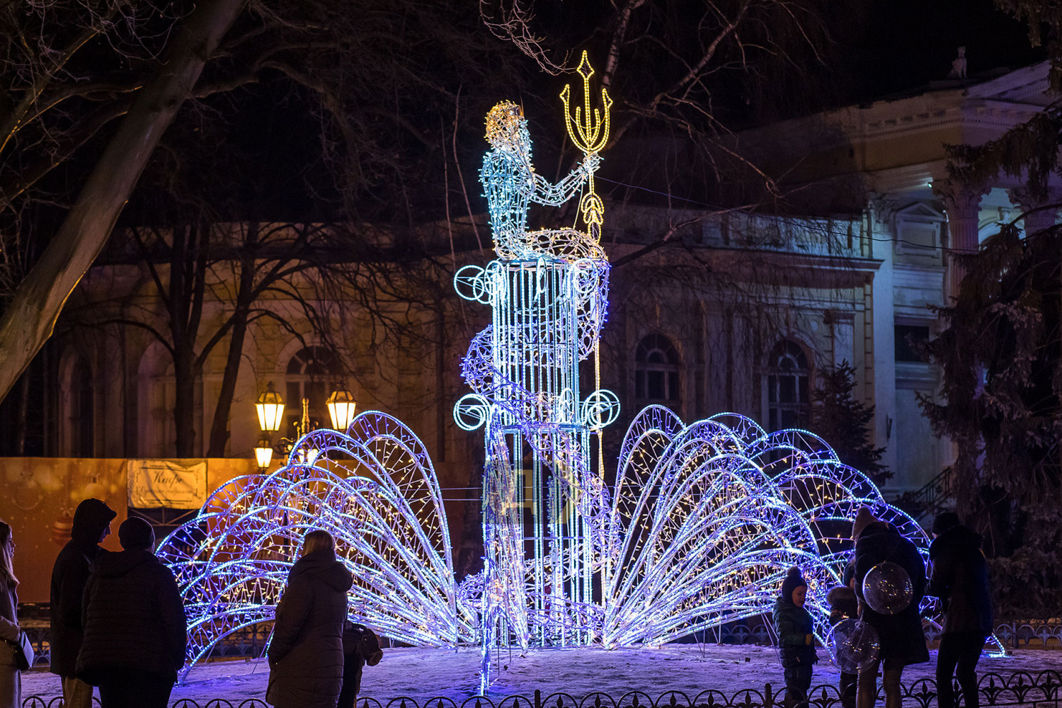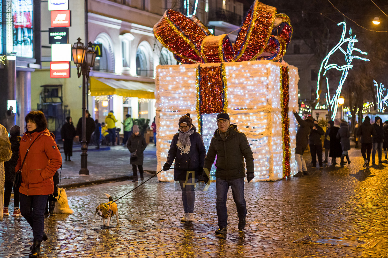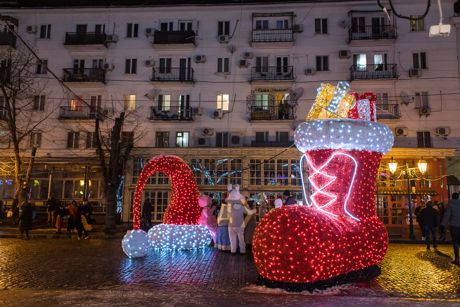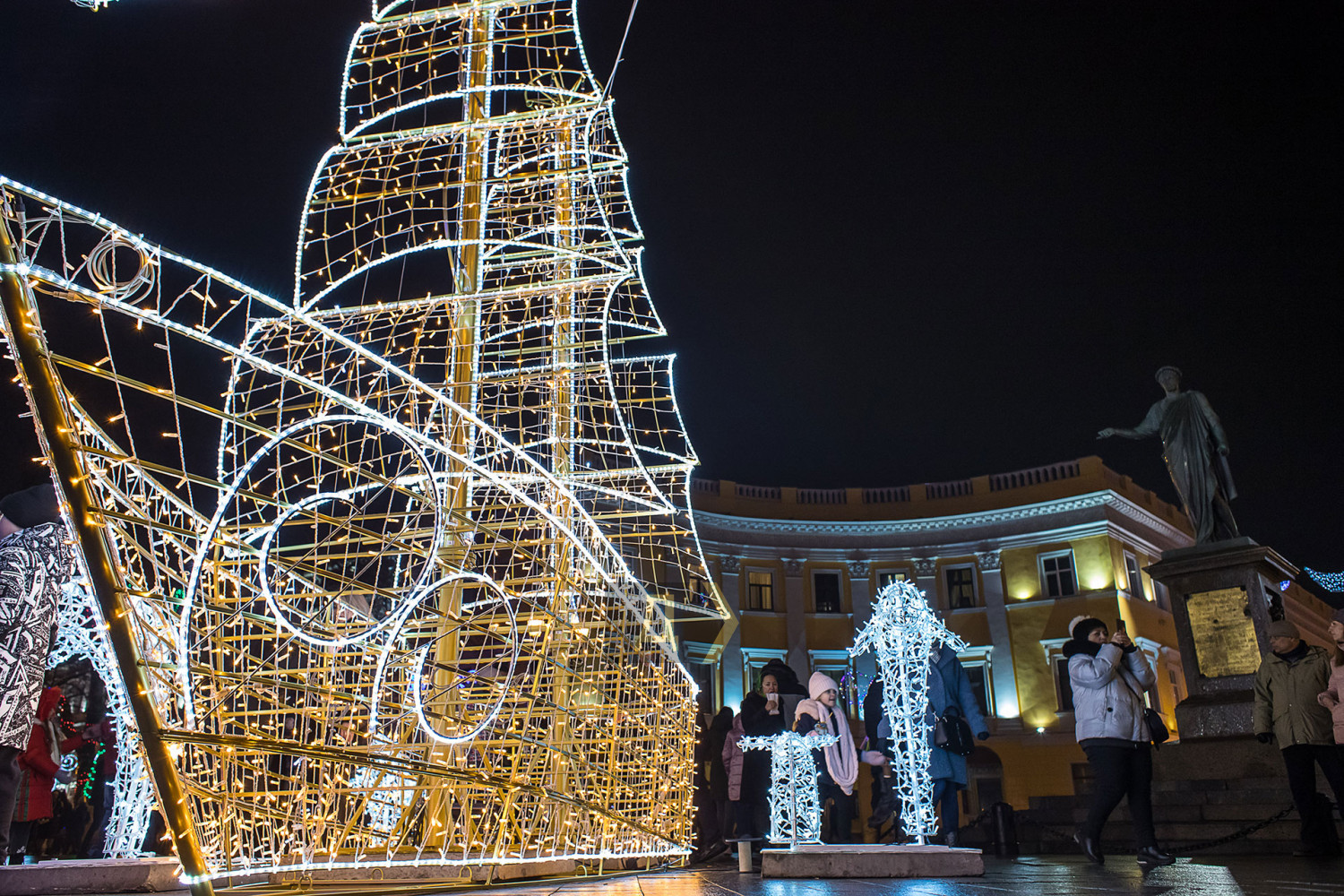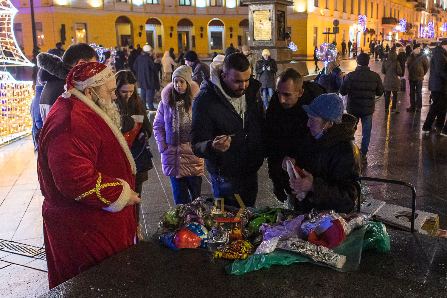 Корреспондент «Думской» прогулялся по вечернему городу, чтобы проникнуться праздничной атмосферой. Центр Одессы полон отдыхающих. Тем более, что тут есть на что посмотреть. Подрядчики успели смонтировать все заявленные светящиеся декорации, и теперь с Потемкинской лестницы скатывается огромная волна, а рядом с Дюком красуется парусник. Центральная клумба возле городского совета украшена светодиодным фонтаном, из центра которого практически выпрыгивает Нептун с трезубцем. Праздничную сцену установили заранее и в половину восьмого там уже разогревались музыканты. Вовсю работают ярмарки, как на Приморском бульваре, так и на Дерибасовской. Самый ходовой товар – глинтвейн и сладости. На главной улице города не протолкнуться. Здесь правят бал ряженые в новогодних персонажей и всевозможные ростовые куклы, требующие за фото с собой несколько гривен. Очень много людей пришли отдохнуть в центр семьями с детьми, а откровенно пьяных маргиналов единицы. Впрочем, даже если они и рискнут нарушать общественный порядок, то их ждет быстрая кара. Мы стали свидетелями довольно внушительного и одновременно романтичного развода военнослужащих Национальной гвардии возле археологического музея. Один из стражей порядка сделал предложение своей девушке прямо перед тем, как отправиться на праздничные улицы оберегать наш с вами покой. С Новым годом! Автор — Александр Гиманов СМЕРТЬ РОСІЙСЬКИМ ОКУПАНТАМ! Помітили помилку? Виділяйте слова з помилкою та натискайте control-enter |