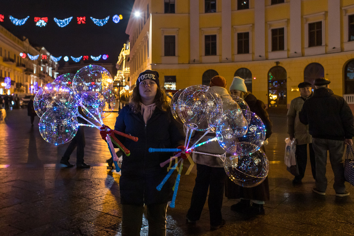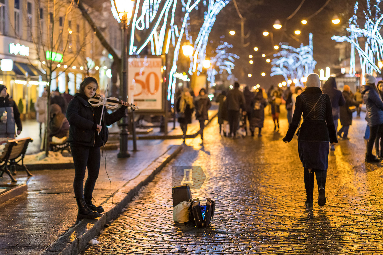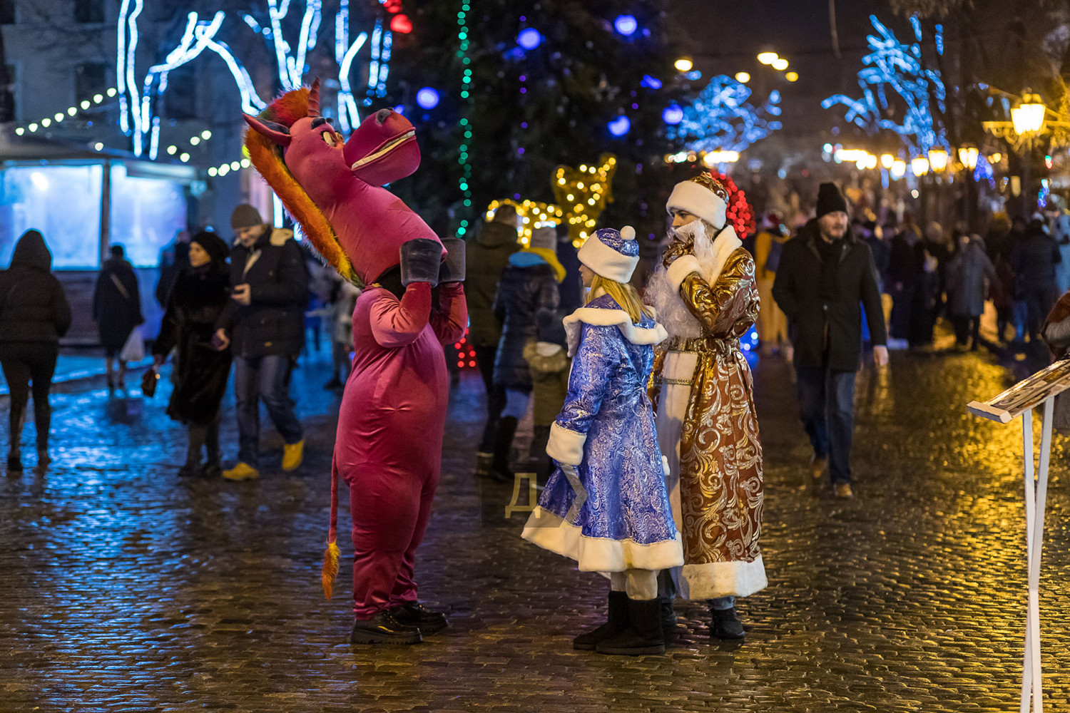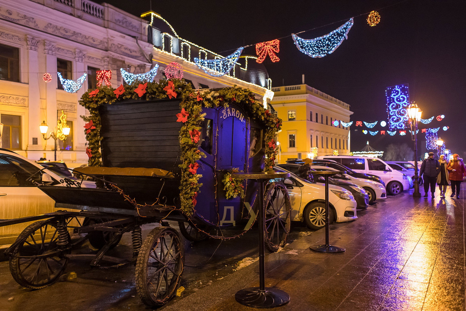 Корреспондент «Думской» прогулялся по вечернему городу, чтобы проникнуться праздничной атмосферой. Центр Одессы полон отдыхающих. Тем более, что тут есть на что посмотреть. Подрядчики успели смонтировать все заявленные светящиеся декорации, и теперь с Потемкинской лестницы скатывается огромная волна, а рядом с Дюком красуется парусник. Центральная клумба возле городского совета украшена светодиодным фонтаном, из центра которого практически выпрыгивает Нептун с трезубцем. Праздничную сцену установили заранее и в половину восьмого там уже разогревались музыканты. Вовсю работают ярмарки, как на Приморском бульваре, так и на Дерибасовской. Самый ходовой товар – глинтвейн и сладости. На главной улице города не протолкнуться. Здесь правят бал ряженые в новогодних персонажей и всевозможные ростовые куклы, требующие за фото с собой несколько гривен. Очень много людей пришли отдохнуть в центр семьями с детьми, а откровенно пьяных маргиналов единицы. Впрочем, даже если они и рискнут нарушать общественный порядок, то их ждет быстрая кара. Мы стали свидетелями довольно внушительного и одновременно романтичного развода военнослужащих Национальной гвардии возле археологического музея. Один из стражей порядка сделал предложение своей девушке прямо перед тем, как отправиться на праздничные улицы оберегать наш с вами покой. С Новым годом! Автор — Александр Гиманов СМЕРТЬ РОСІЙСЬКИМ ОКУПАНТАМ! Помітили помилку? Виділяйте слова з помилкою та натискайте control-enter |