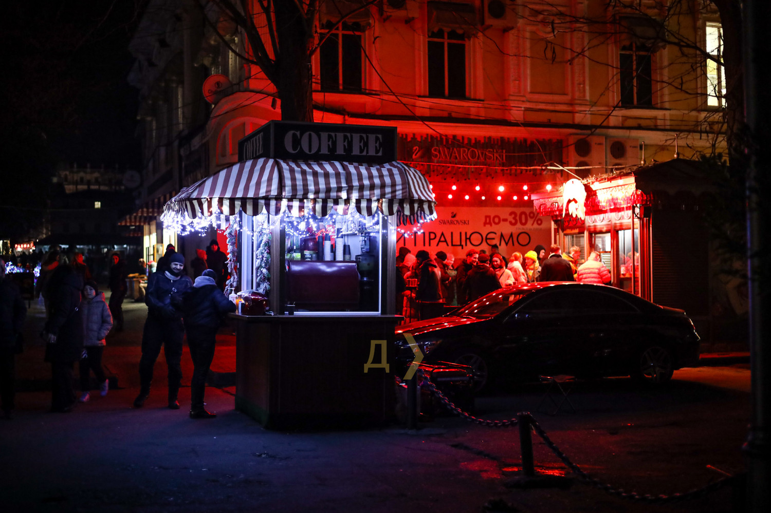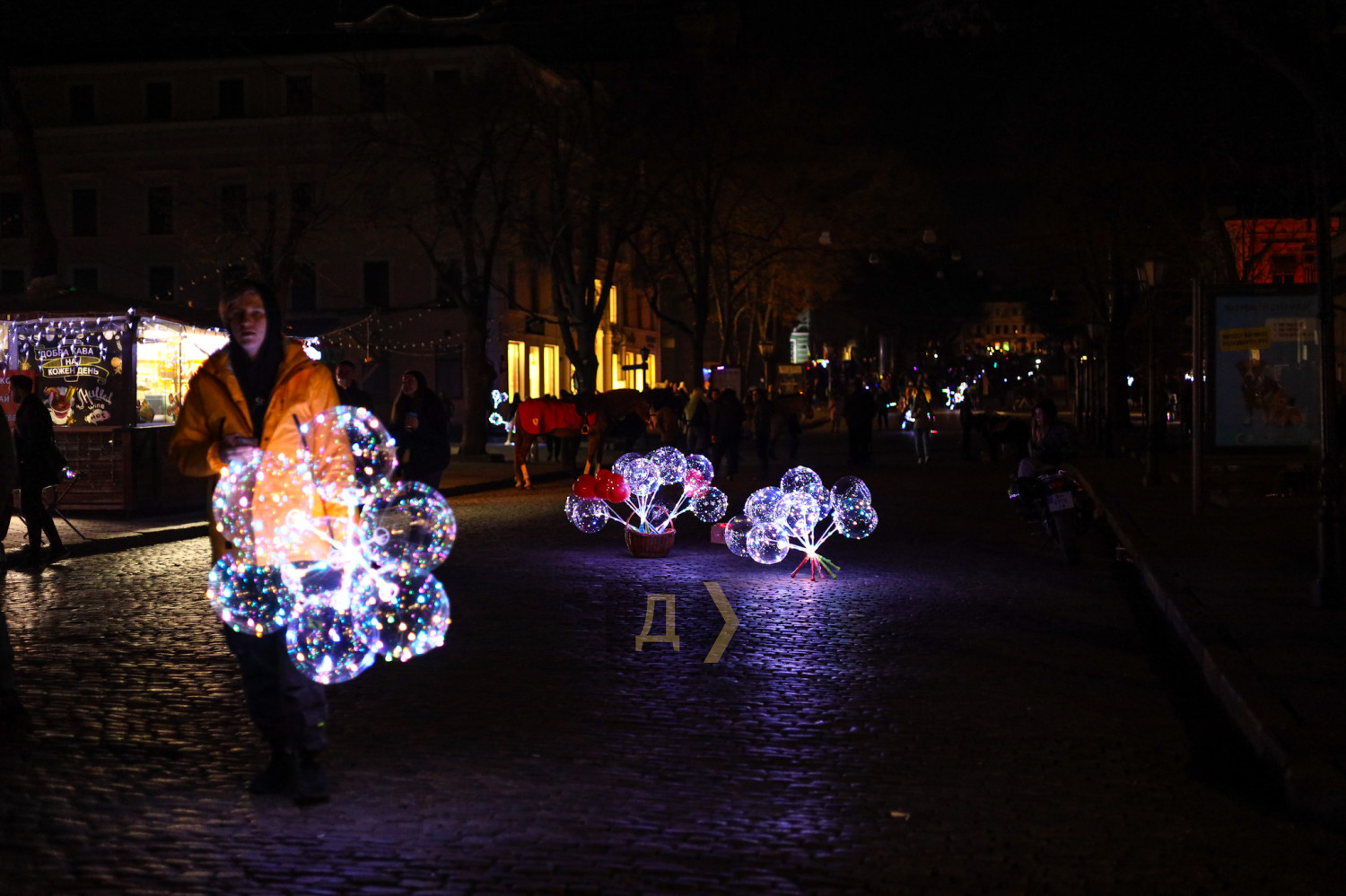Незважаючи на блекаут, Одеса готується до Нового року. Власники ресторанів і бутиків прикрашають свої вітрини святковою атрибутикою і не забувають підлити свіжу порцію палива в генератори. Дерибасівська майже повністю занурена в темряву, але це не відлякує відпочивальників, одеситів і гостей міста. Сім'ї з дітьми прогулюються центральною вулицею, єдине освітлення якої створюють продавці кульок, що світяться. Вуличні музиканти розважають публіку. Місто живе. СМЕРТЬ РОСІЙСЬКИМ ОКУПАНТАМ! Помітили помилку? Виділяйте слова з помилкою та натискайте control-enter |