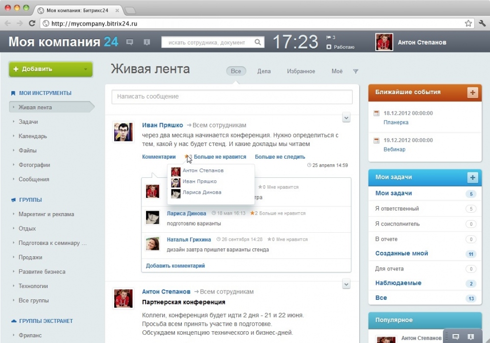 Предприниматели Одессы переходят на новые инструменты управления бизнесом (на правах рекламы)В бизнесе, как и в искусстве, нельзя достигнуть желаемого результата без использования хороших инструментов. Талантливый художник не напишет картину без красок и холста даже при большом вдохновении. А пробивной предприниматель не создаст прибыльное дело без эффективных инструментов управления бизнесом даже при стахановском трудолюбии. Вполне закономерно, что малый и средний бизнес активно использует онлайн-сервисы для автоматизации бизнеса. С их помощью украинские компании легче переживают экономический кризис, так как они помогают объединить компанию и наладить работу коллектива. Компании, в которых не налажен нормальный рабочий процесс, не могут работать продуктивно, а значит приносить прибыль и достойно конкурировать на рынке. Они первыми ощущают удары экономики, не выдерживают конкуренции и уходят в историю. Отсутствие нормальной связи между сотрудниками, бесконечные поиски документов в почтовой переписке, огромное количество программ с паролями и логинами, делают работу неэффективной. Любая задача с таким подходом занимает большое количество времени, а в кризисное время это просто непозволительно. Чтобы навести порядок в компании, нужен сервис, который охватывает все потребности бизнеса, работает как единое целое и включает в себя инструменты управления задачами и проектами, CRM, голосовую и видеосвязь, мессенджер, а также возможность работы с документами и файлами. Переучивать людей для работы в новой среде трудно, поэтому нужно выбирать максимально простую и интуитивно понятную систему. Именно поэтому более 6000 украинских компаний выбрали облачный сервис «Битрикс24». Его разработчики дали возможность людям работать в пространстве, максимально похожем на социальную сеть. До 12 человек сервис абсолютно бесплатный. Благодаря такому подходу «Битрикс24» объединяет всю компанию и приживается без какого-либо сопротивления. По своей концепции он универсален и подходит для компаний практически любой формы собственности, сферы деятельности, структуры и размера коллектива. А наибольшую отдачу получает малый бизнес, который не использует специальное ПО для организации бизнес-процессов. Вся работа выполняется в одной системе, а облачная архитектура делает доступной работу из любой точки мира. Сотрудники могут работать из дома, со смартфона или планшета, и даже в отпуске. Социальная сеть для коллектива Социальность – это главный принцип, по которому работает «Битрикс24». Его модуль «Живая лента» визуально и по функционалу похож на закрытую социальную сеть для коллектива. Она помогает быть в курсе всех новостей компании, видеть ход выполнения задач, обсуждать с коллегами рабочие вопросы. Такой подход увеличивает вовлеченность сотрудников в рабочие процессы и налаживает отношения в компании. Но в сравнении с Facebook или «Вконтакте» у рабочей «Живой ленты» есть несколько преимуществ. Во-первых, высокая продуктивность общения между коллегами. Они сконцентрированы на обсуждении рабочих вопросов и не отвлекаются на другие вещи. А руководство может следить за активностью подчиненных. Во-вторых, к постам можно прикреплять офисные документы, макеты, привязывать события в календаре, комментировать, ставить лайки. В-третьих, 