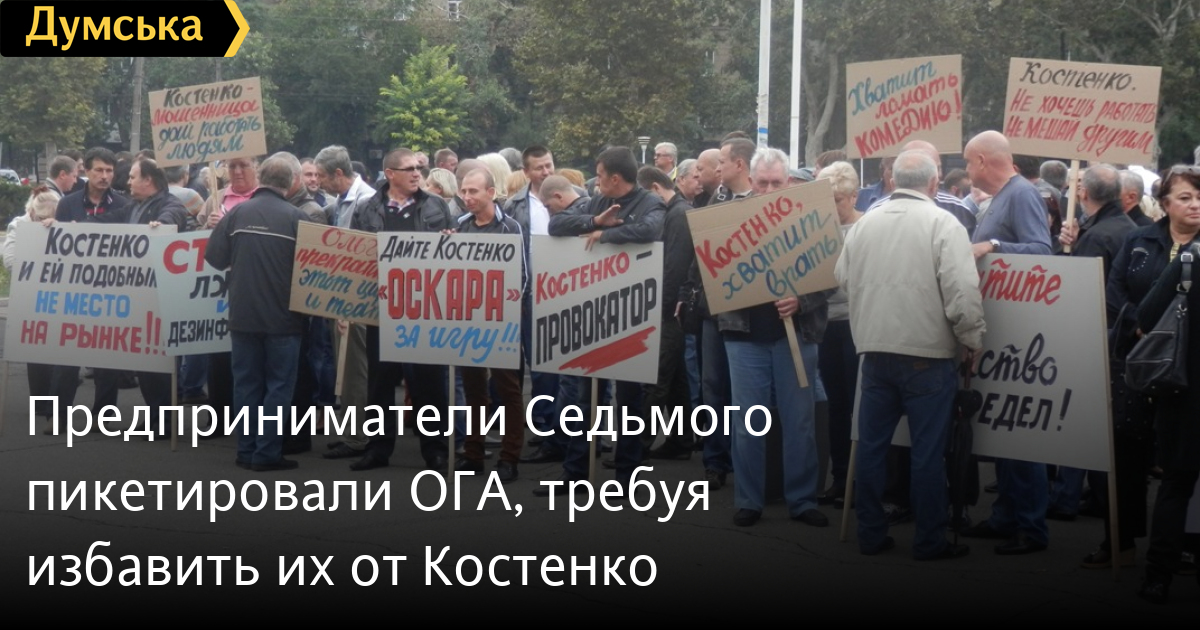 Предприниматели промтоварного рынка «Седьмой километр» 13 сентября провели митинг у стен облгосадминистрации, выступая против своей коллеги и известной активистки Ольги Костенко. По словам протестующих, причинной очередного конфликта стало публичное обращение госпожи Костенко к руководству страны. Глава инициативной группы предпринимателей Виктор Кудлай заявил, что ее действия дестабилизируют обстановку на рынке, подрывают имидж предприятия, что в конечном итоге сказывается на потребительском спросе. «Последней каплей, переполнившей наше терпение, стало ее выступление в информационном агентстве УНИАН, где она решила обратиться через СМИ к Генеральному прокурору и Президенту Украины с просьбой организовать тотальную проверку предпринимателей на территории Промтоварного рынка. Она мотивировала свои слова огульным обвинением предпринимателей в ведении теневого бизнеса, при этом не приводя никаких конкретных фактов. И все это от имени профсоюза «Еднисть», от имени тысяч и тысяч предпринимателей, якобы состоящих в его рядах», — отметил он. «Мы на рынке 15 лет, но такого, чтоб мне кто-то диктовал условия, как мне вести себя со своей частной собственностью, еще не было. Она будоражит весь рынок своим шизофреническим поведением», — говорит одна из предпринимателей Лидия Мартынова. Торговцы уверены, что активность Костенко – политический заказ конкурентов или завистников промрынка. «Мы подавали заявления в милицию, делали публичные заявления, ее неоднократно штрафовали, но угомониться она не может. При этом заявляет, что уже полтора месяца ничего не ест в знак протеста против определения суда, запрещающего ей вести противоправную общественную деятельность на территории рынка. В это сложно поверить», — добавил Виктор Кудлай. Участники митинга направили обращение на губернатору Одесской области Эдуарду Матвийчуку с просьбой «способствовать сохранению общественного порядка, спокойной и деловой атмосферы на промтоварном рынке, организовать проверку работы лжеорганизации «Еднисть» и оградить предпринимателей от деятельности гражданки Костенко». СМЕРТЬ РОССИЙСКИМ ОККУПАНТАМ! Заметили ошибку? Выделяйте слова с ошибкой и нажимайте control-enter |