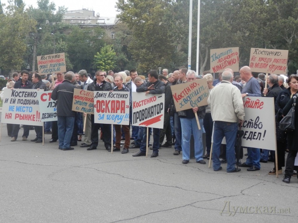 Предприниматели промтоварного рынка «Седьмой километр» 13 сентября провели митинг у стен облгосадминистрации, выступая против своей коллеги и известной активистки Ольги Костенко. По словам протестующих, причинной очередного конфликта стало публичное обращение госпожи Костенко к руководству страны. Глава инициативной группы предпринимателей Виктор Кудлай заявил, что ее действия дестабилизируют обстановку на рынке, подрывают имидж предприятия, что в конечном итоге сказывается на потребительском спросе. «Последней каплей, переполнившей наше терпение, стало ее выступление в информационном агентстве УНИАН, где она решила обратиться через СМИ к Генеральному прокурору и Президенту Украины с просьбой организовать тотальную проверку предпринимателей на территории Промтоварного рынка. Она мотивировала свои слова огульным обвинением предпринимателей в ведении теневого бизнеса, при этом не приводя никаких конкретных фактов. И все это от имени профсоюза «Еднисть», от имени тысяч и тысяч предпринимателей, якобы состоящих в его рядах», — отметил он. «Мы на рынке 15 лет, но такого, чтоб мне кто-то диктовал условия, как мне вести себя со своей частной собственностью, еще не было. Она будоражит весь рынок своим шизофреническим поведением», — говорит одна из предпринимателей Лидия Мартынова. Торговцы уверены, что активность Костенко – политический заказ конкурентов или завистников промрынка. «Мы подавали заявления в милицию, делали публичные заявления, ее неоднократно штрафовали, но угомониться она не может. При этом заявляет, что уже полтора месяца ничего не ест в знак протеста против определения суда, запрещающего ей вести противоправную общественную деятельность на территории рынка. В это сложно поверить», — добавил Виктор Кудлай. Участники митинга направили обращение на губернатору Одесской области Эдуарду Матвийчуку с просьбой «способствовать сохранению общественного порядка, спокойной и деловой атмосферы на промтоварном рынке, организовать проверку работы лжеорганизации «Еднисть» и оградить предпринимателей от деятельности гражданки Костенко». СМЕРТЬ РОСІЙСЬКИМ ОКУПАНТАМ! Помітили помилку? Виділяйте слова з помилкою та натискайте control-enter |