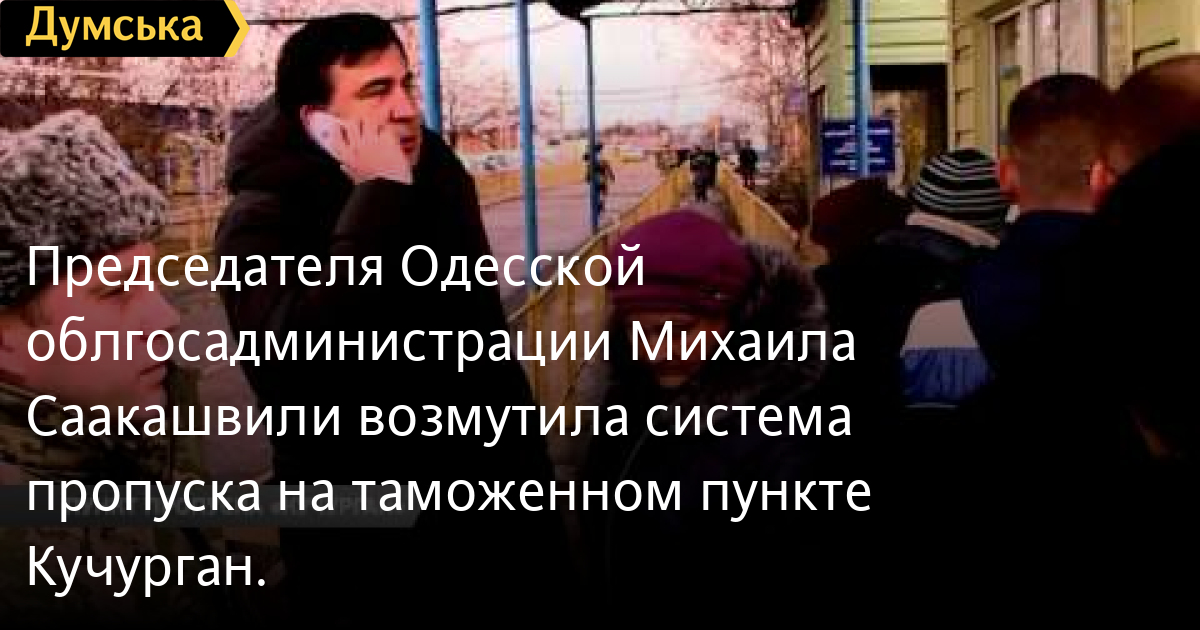 Председателя Одесской облгосадминистрации Михаила Саакашвили возмутила система пропуска на таможенном пункте «Кучурган».СМЕРТЬ РОССИЙСКИМ ОККУПАНТАМ! Заметили ошибку? Выделяйте слова с ошибкой и нажимайте control-enter Думская ТВ. Сюжеты: