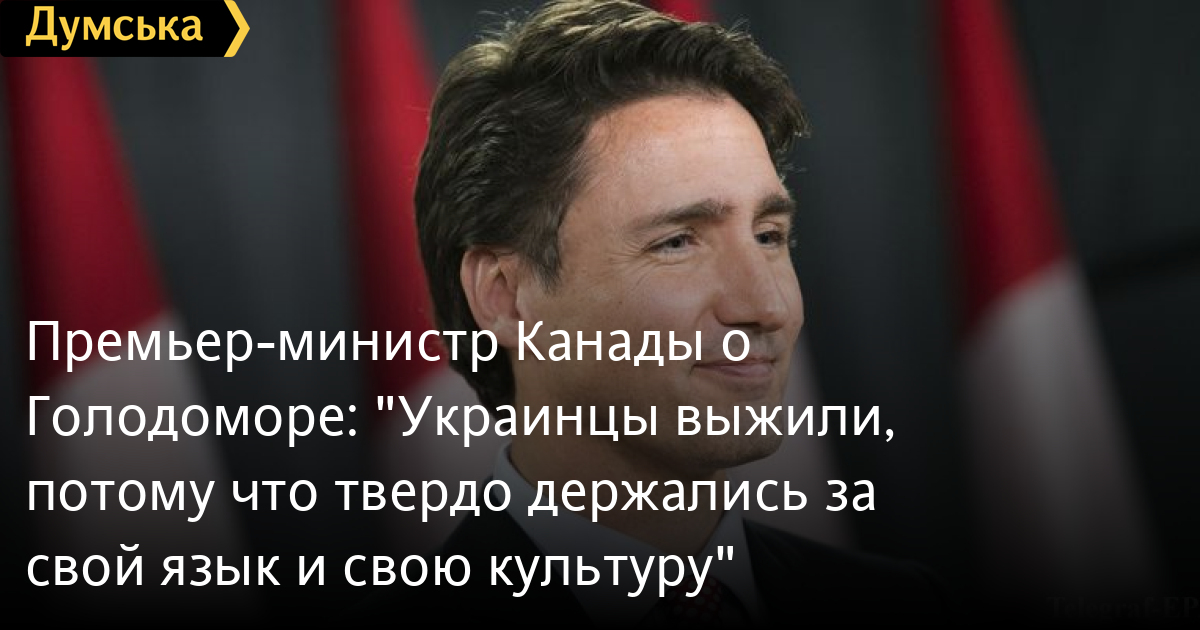 Премьер-министр Канады о Голодоморе: «Украинцы выжили, потому что твердо держались за свой язык и свою культуру»Премьер-министр Канады Джастин Трюдо выступил с сильным заявлением в День памяти жертв голодоморов, призвав соотечественников почтить память украинцев, которые погибли во время страшного голода 1932-1933 годов, спровоцированного коммунистами. Как сообщает «Европейская правда», заявление канадского премьера обнародовано в субботу 28 ноября. «С 1932 по 1933 год тоталитарный советский режим Иосифа Сталина создал в Украине ужасный голод — геноцид, призванный сломить дух украинского народа, стереть его идентичность и остановить его стремление к свободе и независимости. Миллионы умерли от голода, многие из них дети, другие были арестованы, депортированы или казнены в рамках этой жестокой кампании», — заявил Джастин Трюдо. Перед лицом такой жестокости украинцы выстояли, подчеркнул канадский премьер: «Они твердо держались за свой язык и свою культуру, несмотря на все попытки режима подавлять и преследовать их. В 1991 году, после более чем полувека советского гнета и правления, Украина провозгласила независимость», — сказал глава правительства Канады. В течение десятилетий зловещая реальность Голодомора отрицалась, а страдания украинцев были скрыты от мира, добавил Трюдо. «Мы обязаны помнить истории погибших и пострадавших семей. Мы должны принять эти суровые истины и взять на себя обязательства всегда действовать, когда права человека находятся под угрозой. В эту мрачную годовщину я призываю всех канадцев почтить память жертв Голодомора и признать тот вклад, который украинские канадцы внесли в построение лучшей страны для всех нас. Я также подтверждаю непоколебимую поддержку Канадой свободной и независимой Украины ", - говорится в заявлении премьер-министра Канады. СМЕРТЬ РОССИЙСКИМ ОККУПАНТАМ! Заметили ошибку? Выделяйте слова с ошибкой и нажимайте control-enter |
