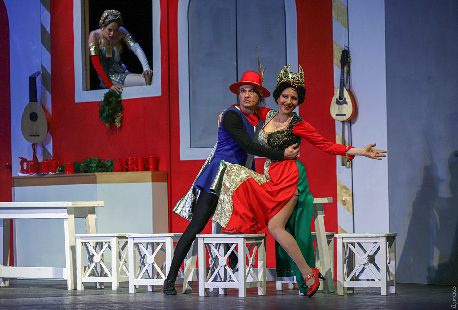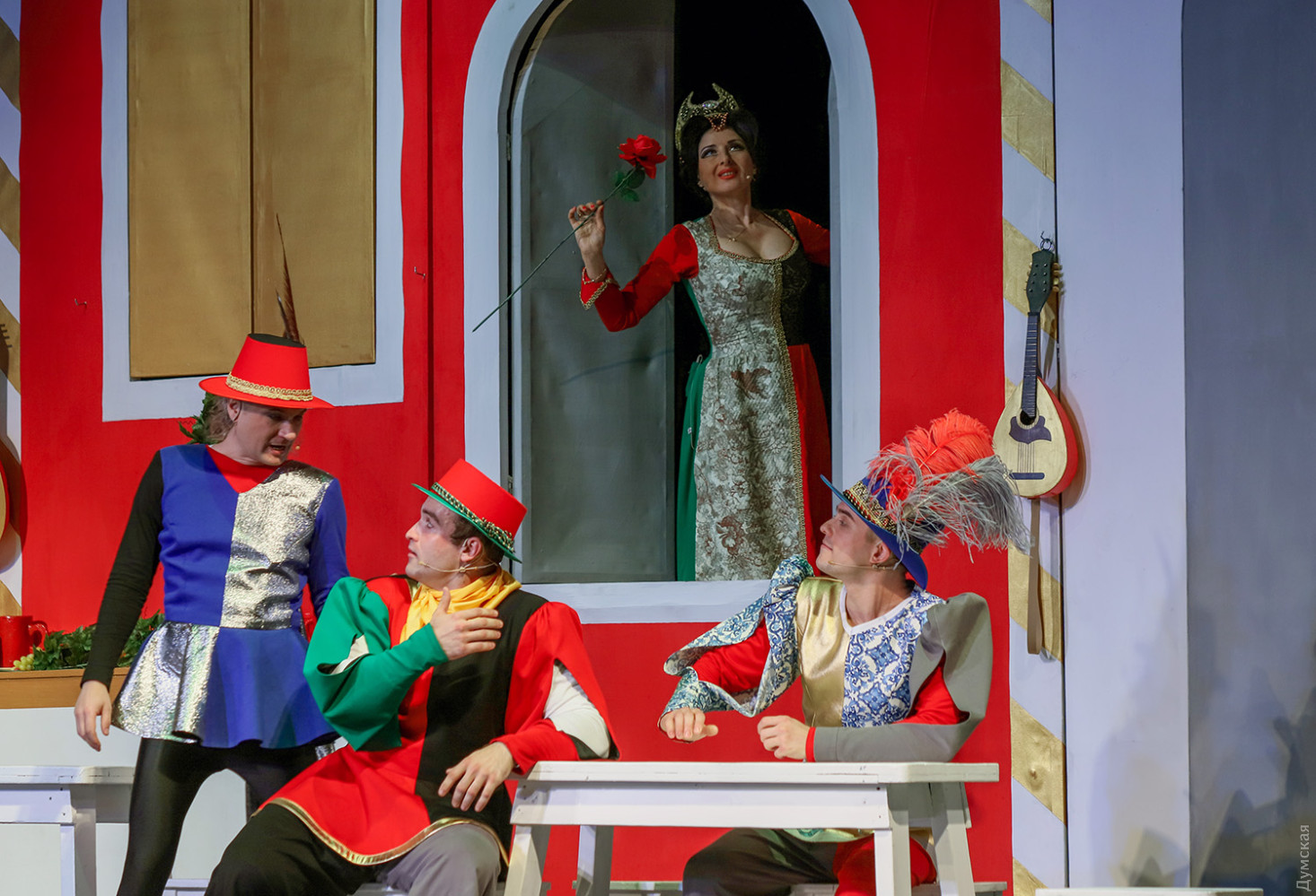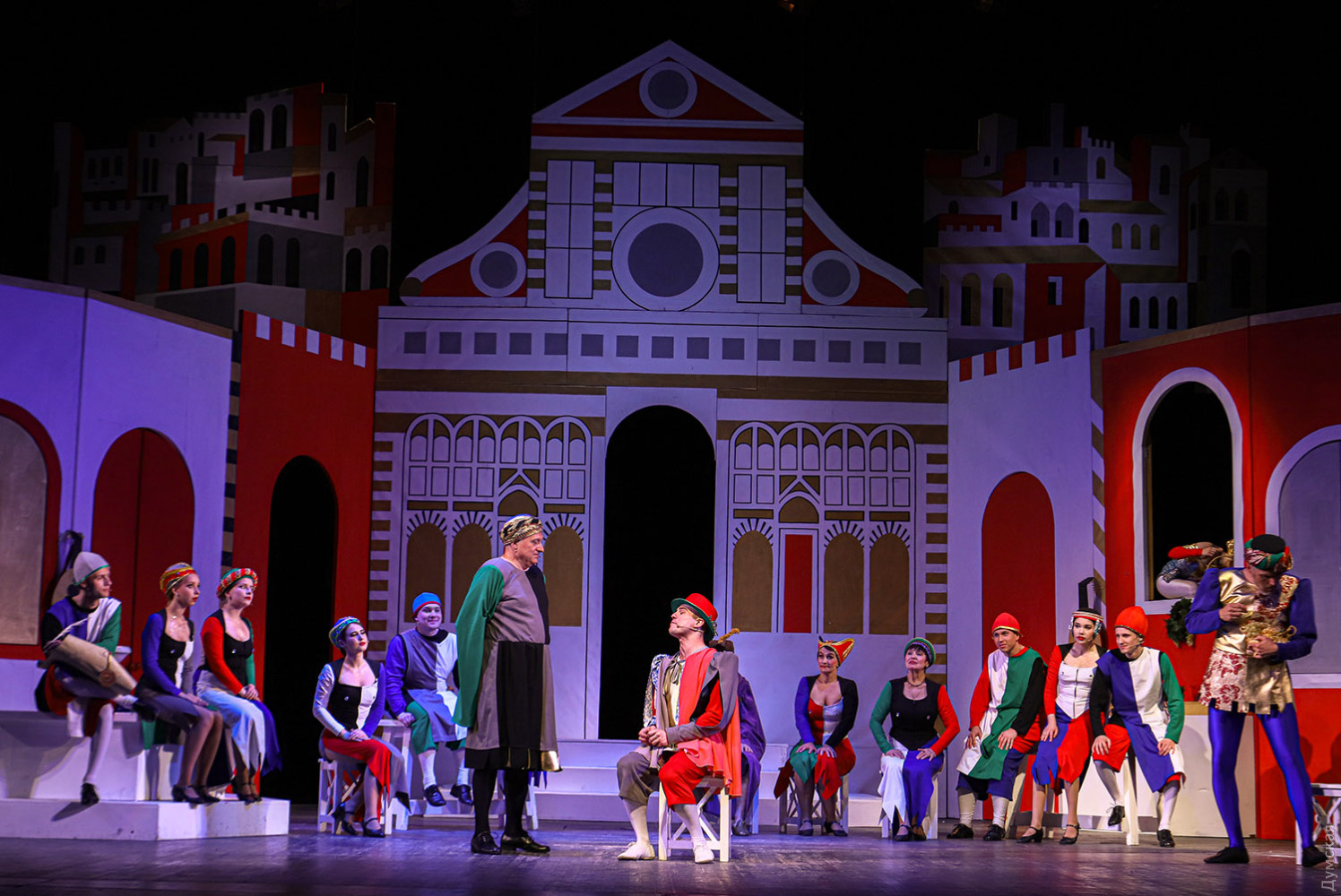 Последней премьерой 78-го сезона Одесского театра музкомедии оказалась одна из лучших оперетт австрийского композитора и дирижера Франца фон Зуппе, идущая у нас под названием «Очарованный Боккаччо». Спектакль поставлен Владимиром Подгородинским, дирижером стал Вадим Перевозников, балетмейстером – Виталий Кузнецов. Оригинальное либретто удачно перевел на украинский язык Леонид Сущенко. Первые показы прошли с успехом, и даже с огоньком (слава Богу, хоть в этом театре не приходится кашлять от дыма), вернее, Огнем, балериной с алыми веерами (в этой партии выходят по очереди Полина Андриевская и Люсине Волошина). Об этот Огонь можно случайно обжечь руку и тут же остудить ее в фонтане, что и делают герои, а вообще-то это олицетворение пламени страсти. Франц фон Зуппе (1819-1895) служил дирижером «Театра ан дер Вин», и успех оффенбаховского «Орфея в аду» (премьера состоялась в Вене в марте 1860 года) подтолкнул его к мысли самому сочинять подобные произведения. Уже спустя полгода Зуппе создает свою первую оперетту «Пансионат», открывшую новую блестящую страницу в истории музыкально-комедийного театра. Лучшими опереттами Зуппе стали «Прекрасная Галатея» (1865), «Фатиница» (1876), «Боккаччо» (1879) и «Донна Жуанита» (1880). Как ни странно, на одесской сцене оперетты Зуппе не ставили, но при жизни композитора одна антреприза что-то из его сочинений в Одессу привозила. Сейчас оперная студия Одесской музыкальной академии имени А.В. Неждановой показывает в концертах несколько номеров из «Прекрасной Галатеи» и планирует поставить ее целиком. Хорошо бы: музыка яркая, мелодичная, либретто написано с юмором, особенно роль ожившей красивой статуи, оказавшейся падкой на подарки, драгоценности, мужчин. Но вернемся к оперетте «Боккаччо». После постановки в 1879 году она была широко популярна в конце XIX — начале XX веков. После премьеры в венском Карлтеатре быстро распространилась по всему миру: США, Франция, Италия, Великобритания и даже Бразилия и Австралия. В 1931 году «Боккаччо» был поставлен в Нью-Йорке, а в 1930-1952 годах в Венской государственной опере. Оперетта отличается ярким итальянским колоритом (персонажи время от времени пляшут зажигательную тарантеллу, трио мужей-рогоносцев поют женам серенады) в соединении с венскими мягкими мелодиями, захватывающими ритмами и своеобразными музыкальными характеристиками действующих лиц. Основой либретто стал «Декамерон» — известный сборник коротких рассказов, созданных Джованни Боккаччо, итальянским писателем эпохи Возрождения. Здесь условно объединены сюжеты многих новелл о молодых кавалерах и их дамах. Но не только они стали героями оперетты, а и сам автор новелл — Боккаччо. В этой роли очень хорош Иван Ковалев, его герой еще молод и верит в любовь, восхищается женщинами (реальный Боккаччо к концу жизни весьма разочаровался в них). Потрясение от эпидемии чумы тоже впереди, об этом речи нет. Поэт веселится и плетет интриги ради воссоединения с любимой. Спектакль посвящен Ренессансу, научившему людей радоваться. Боккаччо радуется прежде всего юной Фиамметте (Юлианна Игнатовская), для которой не является выгодной партией. Остальные персонажи либо лазят в окна к замужним дамам, либо являются их одураченными мужьями, а зритель благодаря яркой сценической конструкции видит все проделки дамочек (заслуженный художник