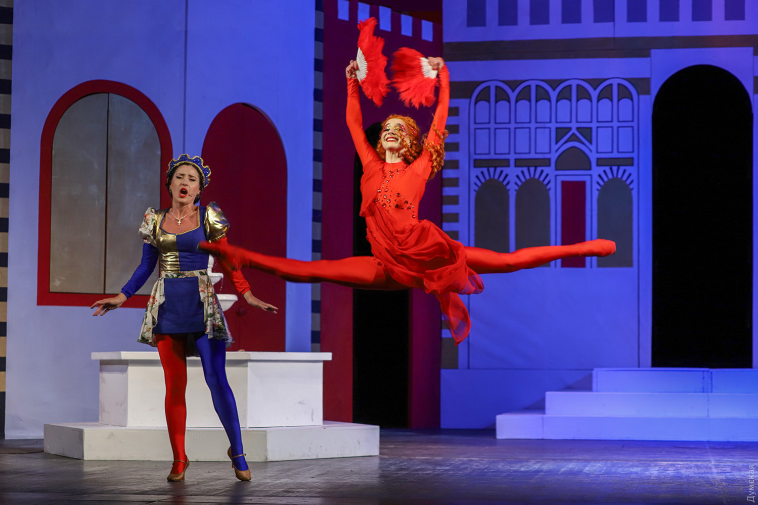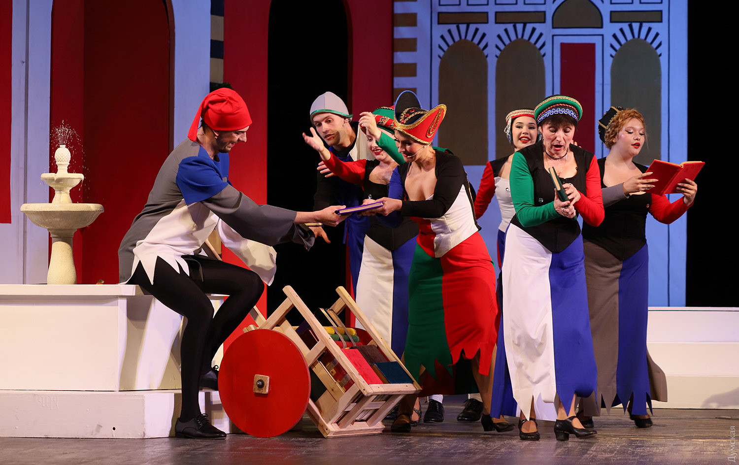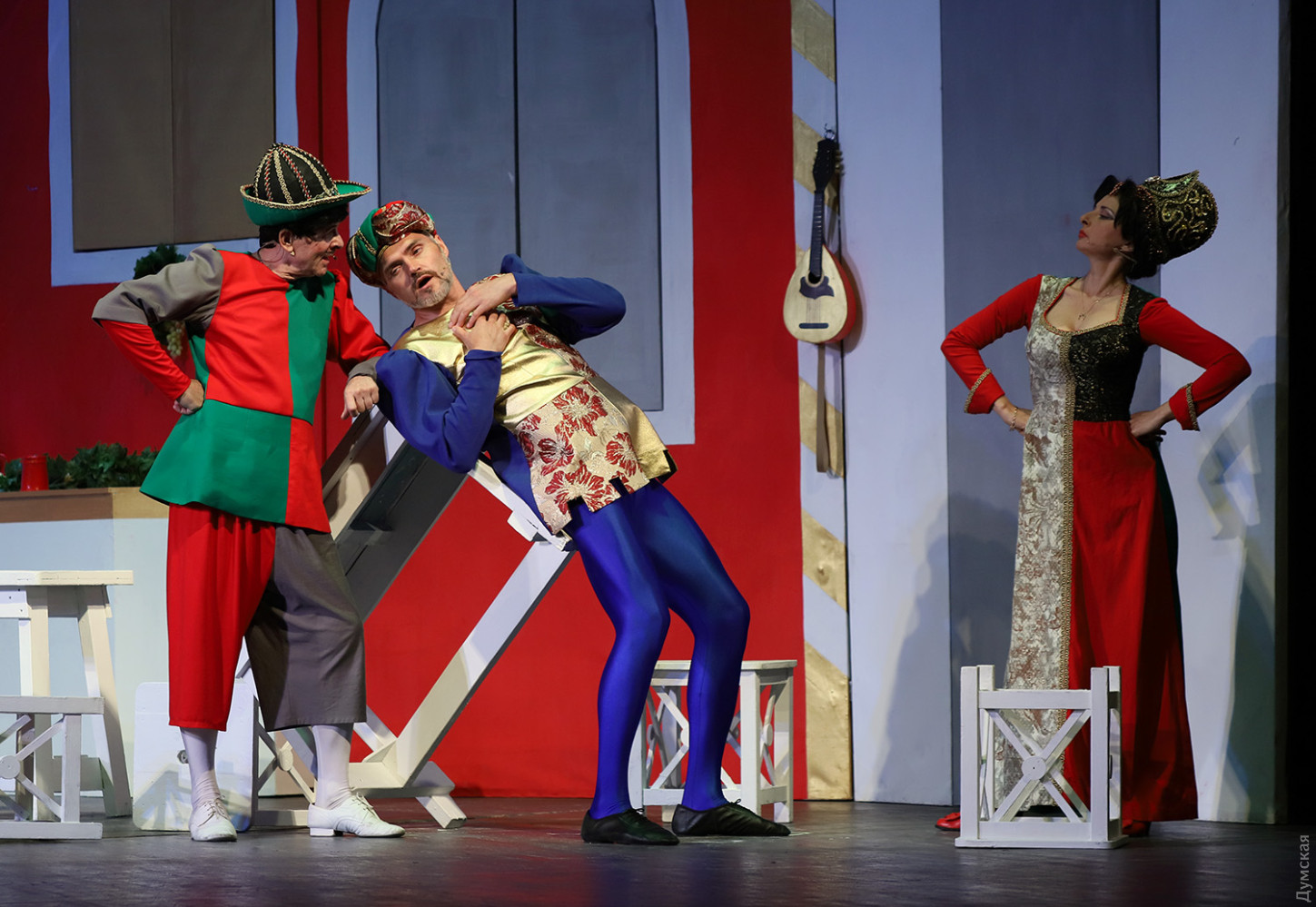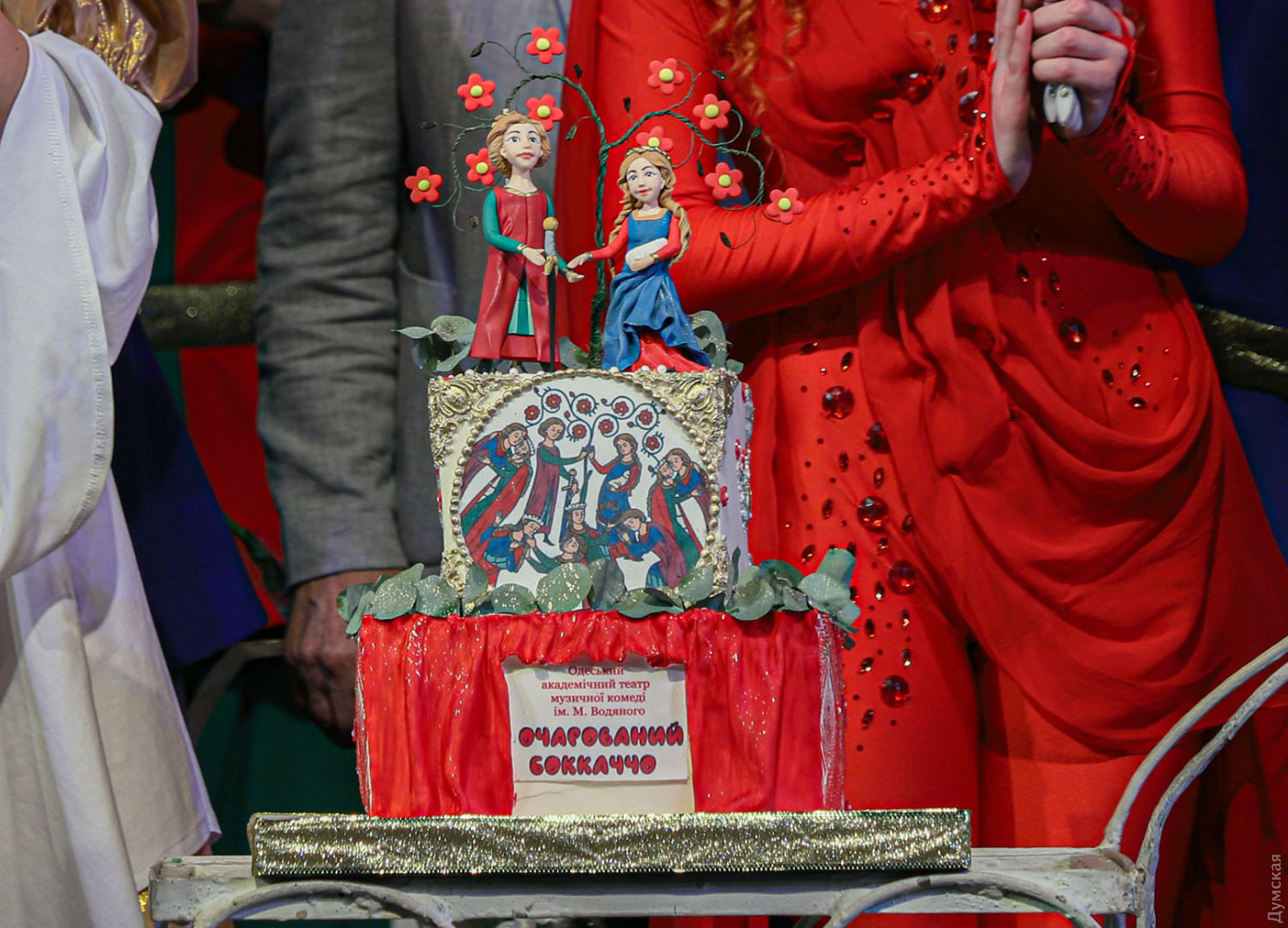 Последней премьерой 78-го сезона Одесского театра музкомедии оказалась одна из лучших оперетт австрийского композитора и дирижера Франца фон Зуппе, идущая у нас под названием «Очарованный Боккаччо». Спектакль поставлен Владимиром Подгородинским, дирижером стал Вадим Перевозников, балетмейстером – Виталий Кузнецов. Оригинальное либретто удачно перевел на украинский язык Леонид Сущенко. Первые показы прошли с успехом, и даже с огоньком (слава Богу, хоть в этом театре не приходится кашлять от дыма), вернее, Огнем, балериной с алыми веерами (в этой партии выходят по очереди Полина Андриевская и Люсине Волошина). Об этот Огонь можно случайно обжечь руку и тут же остудить ее в фонтане, что и делают герои, а вообще-то это олицетворение пламени страсти. Франц фон Зуппе (1819-1895) служил дирижером «Театра ан дер Вин», и успех оффенбаховского «Орфея в аду» (премьера состоялась в Вене в марте 1860 года) подтолкнул его к мысли самому сочинять подобные произведения. Уже спустя полгода Зуппе создает свою первую оперетту «Пансионат», открывшую новую блестящую страницу в истории музыкально-комедийного театра. Лучшими опереттами Зуппе стали «Прекрасная Галатея» (1865), «Фатиница» (1876), «Боккаччо» (1879) и «Донна Жуанита» (1880). Как ни странно, на одесской сцене оперетты Зуппе не ставили, но при жизни композитора одна антреприза что-то из его сочинений в Одессу привозила. Сейчас оперная студия Одесской музыкальной академии имени А.В. Неждановой показывает в концертах несколько номеров из «Прекрасной Галатеи» и планирует поставить ее целиком. Хорошо бы: музыка яркая, мелодичная, либретто написано с юмором, особенно роль ожившей красивой статуи, оказавшейся падкой на подарки, драгоценности, мужчин. Но вернемся к оперетте «Боккаччо». После постановки в 1879 году она была широко популярна в конце XIX — начале XX веков. После премьеры в венском Карлтеатре быстро распространилась по всему миру: США, Франция, Италия, Великобритания и даже Бразилия и Австралия. В 1931 году «Боккаччо» был поставлен в Нью-Йорке, а в 1930-1952 годах в Венской государственной опере. Оперетта отличается ярким итальянским колоритом (персонажи время от времени пляшут зажигательную тарантеллу, трио мужей-рогоносцев поют женам серенады) в соединении с венскими мягкими мелодиями, захватывающими ритмами и своеобразными музыкальными характеристиками действующих лиц. Основой либретто стал «Декамерон» — известный сборник коротких рассказов, созданных Джованни Боккаччо, итальянским писателем эпохи Возрождения. Здесь условно объединены сюжеты многих новелл о молодых кавалерах и их дамах. Но не только они стали героями оперетты, а и сам автор новелл — Боккаччо. В этой роли очень хорош Иван Ковалев, его герой еще молод и верит в любовь, восхищается женщинами (реальный Боккаччо к концу жизни весьма разочаровался в них). Потрясение от эпидемии чумы тоже впереди, об этом речи нет. Поэт веселится и плетет интриги ради воссоединения с любимой. Спектакль посвящен Ренессансу, научившему людей радоваться. Боккаччо радуется прежде всего юной Фиамметте (Юлианна Игнатовская), для которой не является выгодной партией. Остальные персонажи либо лазят в окна к замужним дамам, либо являются их одураченными мужьями, а зритель благодаря яркой сценической конструкции видит все проделки дамочек (заслуженный художник