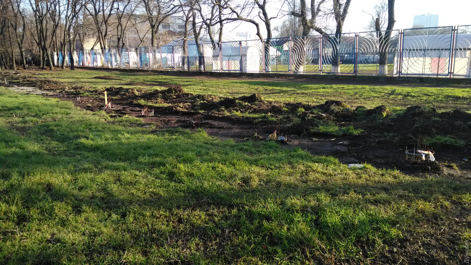 Серьезной травмой может закончиться вечерняя прогулка по Преображенскому парку Одессы, где осенью активизировались сразу две стройки. Как передает корреспондент «Думской», на примыкающей к стадиону «Краян» территории уже видны очертания будущей парковки. 39 машиномест в зеленой зоне, напомним, оборудуют по заказу управления капитального строительства горсовета заодно с возведением новой входной группы зоопарка. Если стройки в зоопарке и на месте кафе «Ольвия» ведутся за заборами, то будущая парковка никак не огорожена. Работы там начались с бурения скважин вдоль стадиона, в каждую из которых опустили арматуру и залили бетоном, очевидно, для дальнейшей установки капитального забора. Рабочие подтвердили, что таким образом отделяют парковку. Как именно будет организован на нее заезд, они не знаю, но заверили, что для пешеходов все будет по-прежнему — вход со стороны Водопроводной останется, его только приведут в порядок и поставят ворота. И все бы ничего, но арматурины торчат из земли на неосвещенной и при этом оживленной (сквозной проход между Мечникова и Водопроводной) тропинке. Опасные препятствия никак не обозначены, за исключением редких обрывков ленты, которые можно принять за мусор или вообще не увидеть в темноте. Так что пешеходам следует быть вдвойне осторожными. Как сообщалось ранее, во время строительных работ в Преображенском парке планируют срубить 29 деревьев, в том числе 20 здоровых. «При производстве работ будет рассматриваться возможность сохранить максимальное количество деревьев, попадающих под демонтаж», — заверили в УКСе. СМЕРТЬ РОСІЙСЬКИМ ОКУПАНТАМ! Помітили помилку? Виділяйте слова з помилкою та натискайте control-enter Новини по цій темі: 19 вересня 2025: Депутатсько-чиновницький десант: в Одесі намагаються врятувати від транспортного колапсу Золотий Берег (фоторепортаж) 9 вересня 2025: Біля одеського парку Перемоги тепер тільки платна парковка: чи є в цьому необхідність? 16 серпня 2025: Здобули: після демонтажу шлагбаумів ситуація на одеському узбережжі близька до критичної (фото) |