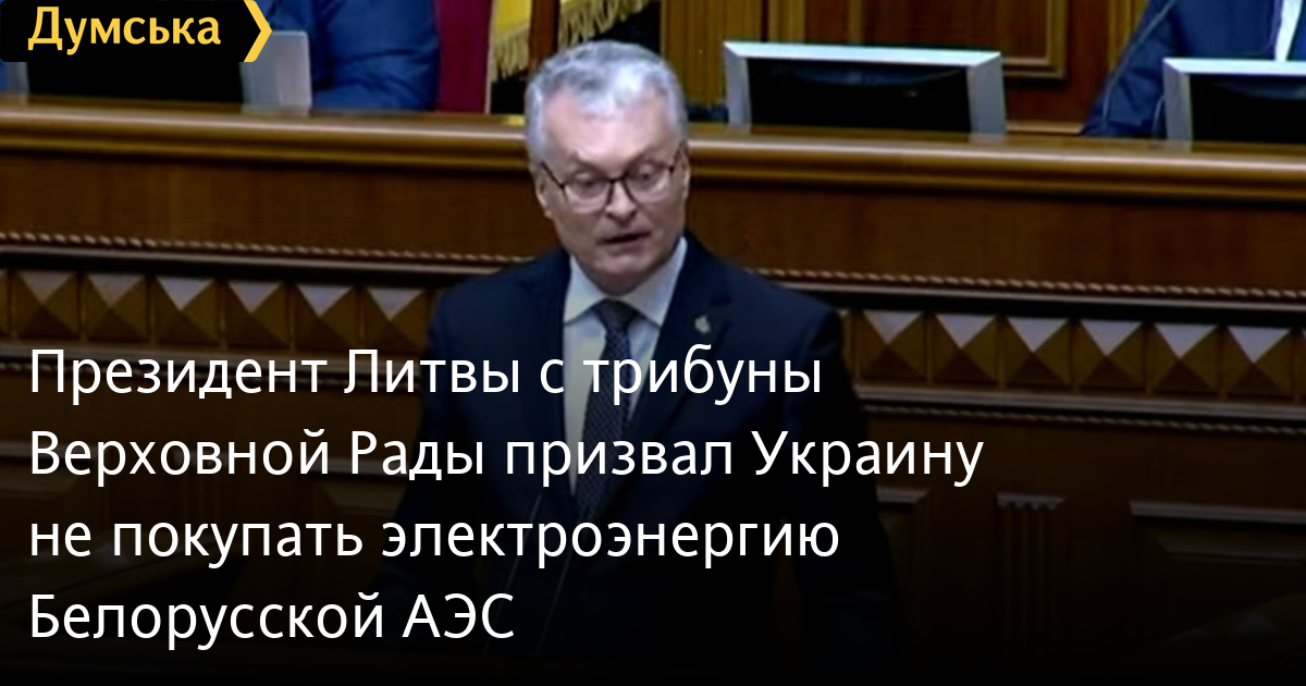 Президент Литвы с трибуны Верховной Рады призвал Украину не покупать электроэнергию Белорусской АЭСЛитва призвала Украину не покупать электроэнергию Белорусской АЭС, так как это российский проект, которым Кремль хочет увеличит свое энергетическое влияние. Об этом заявил во время выступления в Раде президент Литвы Гитанас Науседа, который находится в Украине с официальным визитом. Он заявил, что растущая хрупкость Беларуси означает прямую угрозу для интересов не только Литвы, но и Украины. «Сегодня прошу публично попросить власть и украинский народ поддержать позицию по поводу БелАЭС. От имени стран Балтии обращаюсь к Украине с призывом прекратить покупать электроэнергию Белорусской АЭС - это проект России», — призвал президент Литвы. К слову, Гитанас Науседа начал свое выступление с трибуны Рады на украинском языке, говорил о славном общем прошлом наших народов и еще раз поддержал территориальную целостность Украины. «Крым — это Украины», — заявил президент Литвы. Отметим, в начале ноября в энергосистему Беларуси был включен первый энергоблок БелАЭС. После этого МИД Литвы направило Белоруси ноту протеста с призывом остановить запуск атомной электростанции. СМЕРТЬ РОССИЙСКИМ ОККУПАНТАМ! Заметили ошибку? Выделяйте слова с ошибкой и нажимайте control-enter |